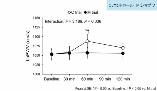 シマグワ葉パウダー摂取が食後血糖値上昇に伴う動脈スティフネスの増大に及ぼす影響