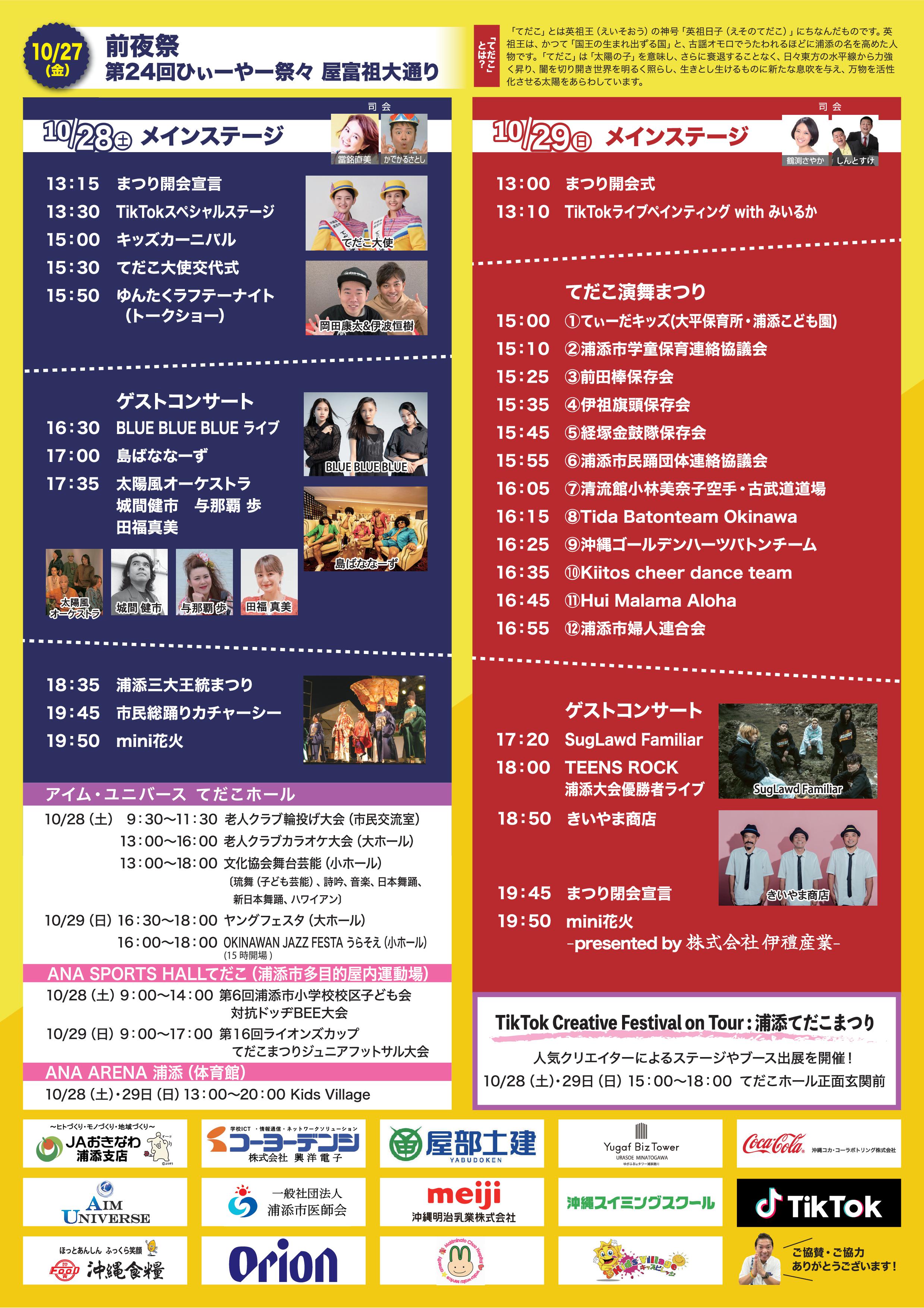 浦添てだこまつり実行委員会では、まつり当日の10月28日(土)、29日(日)及びまつり翌日の10月30日(月)に、