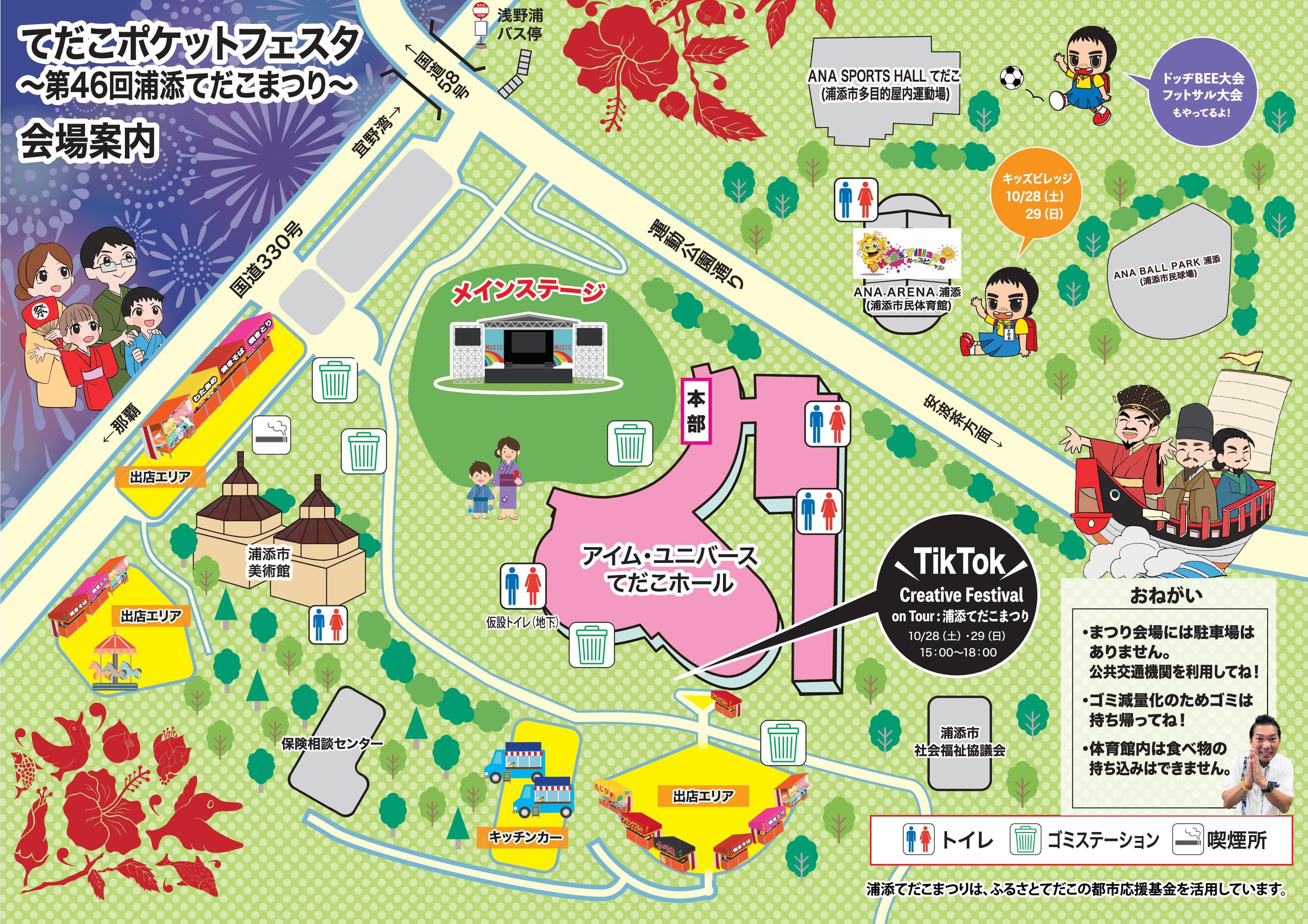 今年のてだこまつりは、これまでてだこまつり会場として使用してきた陸上競技場が新体育館建設工事により利用制限がかかるため、今年はメイン会場を浦添カルチャーパークに変更し開催いたします。これまでのまつりのイメージをガラッと変えた新たな祭りとして、各ブースをポケットに見立て、ポケットから楽しいことが飛び出してくることをイメージし、名称を「てだこポケットフェスタ~第46回浦添てだこまつり~」(略してポケフェス!)と銘打ち開催します!