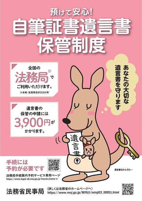 法務局で、自筆の遺言書を保管する制度が利用できます。