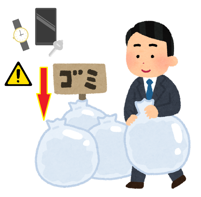 そのため、収集したごみ袋の中に貴重品があったとしても探してお返しすることはできません。