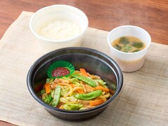 *おうち定食〔テイクアウト〕の「肉野菜炒め(ごはん・みそ汁付)」が該当