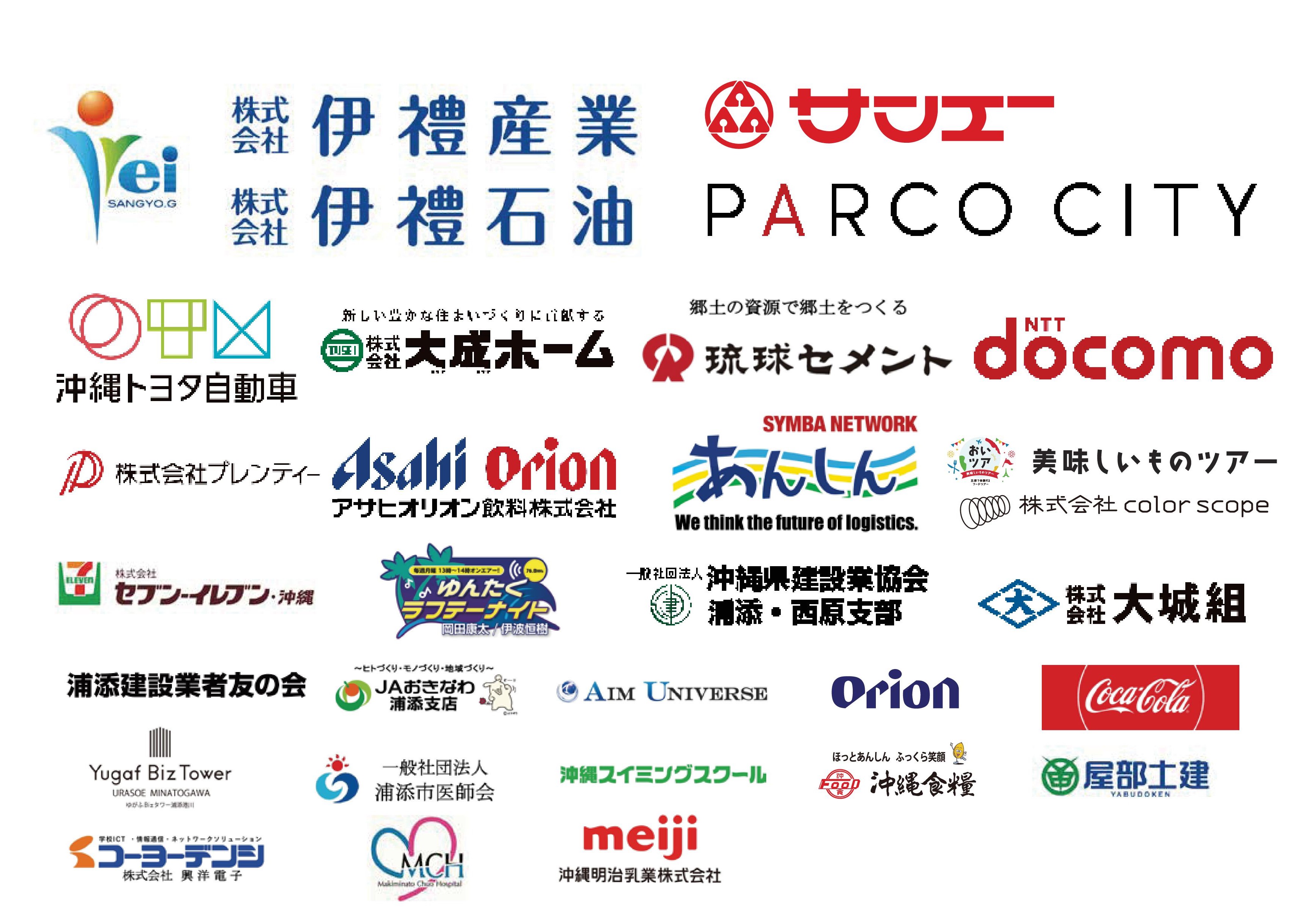 (株) サウスウインド・システム、有限会社ライフ工業、AM科学株式会社、みどり耳鼻咽喉科、株式会社三虎、(株)アミューズメント沖縄、(有)大栄物産、カセイ有限会社、医療法人博心会、株式会社モダン金物、(有)協栄商事、丸政商事(株)、浦添市清掃事業協同組合、株式会社日新電器産業、(有)津田塾、株式会社マルキン海産、バークレイ(株)、有限会社昭和厨房設備、医療法人清心会徳山クリニック、(株)琉球新報販売センター、(資)丸仲工業、(株)隆盛コンサルタント、税理士法人リモト、沖カンガイ株式会社、浦添市管工事事業協同組合、有限会社フロンティア都市開発、(株)全沖産業、(有)照屋金物商会、有限会社ウォータープラン、新沖防災工業(株)、(有)日南自動車サービス、(有)太輪、有限会社蔵人、一般社団法人日本自動車販売協会連合会沖縄県支部、沖縄誠新(株)、(株)クロトン、(株)アンジェリィ 、有限会社仁王商事、(株) JAおきなわSS、沖プライ商事(株)、(有)大福建設、原圧送(株)、(株)第一パン、沖縄日下部株式会社、(有)大田機電、有限会社沖縄紙業、琉球建設コンサルタント株式会社、株式会社オキセイ産業、(株)マルアオ、沖縄シャーリング(株)、(株)メディライン、(有)長浜冷機、有限会社たいら園、(株)特産商事、(名)浦城タクシー、(有)たかざと清掃、(有)浦添清掃、株式会社イーエーシー、株式会社東日産自動車、沖縄工業商事株式会社、株式会社沖縄テクノクリエイト、(有)丸真産業、有限会社なかや食材、有限会社アイライフ、(株)アジア測量設計、有限会社ランドプラン開発、光洋商事(株)、(株)浦城産業、株式会社リウエン、浦添ガス工業(株)、(有)ディスプレイカンパニー、(株)財全グループ、株式会社日興建設コンサルタント、(株)田幸技建コンサルタント、(株)ワールド設計、(株)芝岩エンジニアリング、株式会社沖縄日本管財、株式会社美化清掃、株式会社F.T.K印刷、株式会社エム・エス・シュターク、沖縄ヨコハマタイヤ株式会社、たつみ総合防災(株)、有限会社南前田、(株)沖食商事、てだこ緑花会、株式会社オーシャン、株式会社URAKATA、(一社)沖縄県建設業協会、株式会社イイトゥク、株式会社丸産業、株式会社沖縄県建設会館、大宝建設株式会社、(株)大富建設コンサルタント、海洋プランニング(株)、愛蘭会バークレー歯科、エムアンドビー(株)、(株)みやぎ商事、(株)平松工具、沖縄総合施設管理(株)、有限会社ブンキョウ技研、興南施設管理(株)、(株)サーベイシステム、株式会社協和エンジニア、(株)大樹建設、株式会社丸福、株式会社共成クリーンサービス、(有)ミネ・エンタープライズ、(株)那覇部品、株式会社レインコーポレーション、大城産業(株)、(株) シグマ沖縄、株式会社かみもり、浦西産業株式会社、浦添地域トラック事業協同組合、サンプランテーショントレーディング(株)、(株)ムラヤマ、(株)J&S international、(有)たから、有限会社ワールド商会、有限会社シンユウ電建、沖縄ユアサ電池販売(株)、(有)松山、(有)松岡産業、南伸空調、世界のブエノチキン、モトーレン沖縄株式会社、デイーボール、有限会社UEO、有限会社大成青果、株式会社翔南工業、リアン、有限会社又吉クリーンサービス、まちなと小児クリニック、浦添市厚生会、有限会社さくもと建設工業、JAおきなわSS、(株)協和建設コンサルタント、(株)朝日建設コンサルタント、(株)アジア技研、(株)貴嶋工業、(有)五輪重機、エーテック株式会社、FUNSHARE株式会社、医療法人なおり、株式会社池原商事、(株)沖縄県花卉卸売市場、株式会社沖縄エネテック、中部興産株式会社、株式会社メイクマン、有限会社浦添電材、(有)大吉宅建、(株)ライトモータース、てだこボウル、(有)金城工作所、株式会社花城空調設備、(有)與那嶺冷機、有限会社浦添水道サービスセンター、福山商事(株)、有限会社拓実住宅、株式会社技興、株式会社協栄ガス工業、シンバホールディングス(株)、琉球物流株式会社、(有)シグマ管理、(株)南日本化学、宮里門中会、(有)オーエムサポート、琉球警備保障株式会社、沖縄プラント工業(株)、一般社団法人湧川財団、(株)協和、有限会社シー・ショップ、(株)イチゴ、(株)沖縄給油設備、公益財団法人国立劇場おきなわ運営財団、株式会社佐久本工機、(株)アーバン沖縄、大平不動産(株)、牧港オートサービス、浦添市職員労働組合、株式会社ちとせ印刷、パナソニックコンシューマーマーケティング、てだこ印刷会、合資会社松門産業、琉球ミート株式会社、株式会社沖技、沖縄県行政書士会、てだこ建材(株)、有限会社砂田義肢製作所、(株)リウゼン、ソフィエルペアー(株)、オーシャン石油株式会社、(株)牧港産業、合資会社沖縄産業、マキシムオキナワ、琉球ペイント株式会社、(株)大洋土木コンサルタント、牧港ヒューム管工業所、宮城珠算学校、てだこの都市(まち)設計協力会、浦添ライオンズクラブ、浦添てだこライオンズクラブ、セイモリ電器、株式会社マルモト、てだこ建設コンサル会、(株)ト