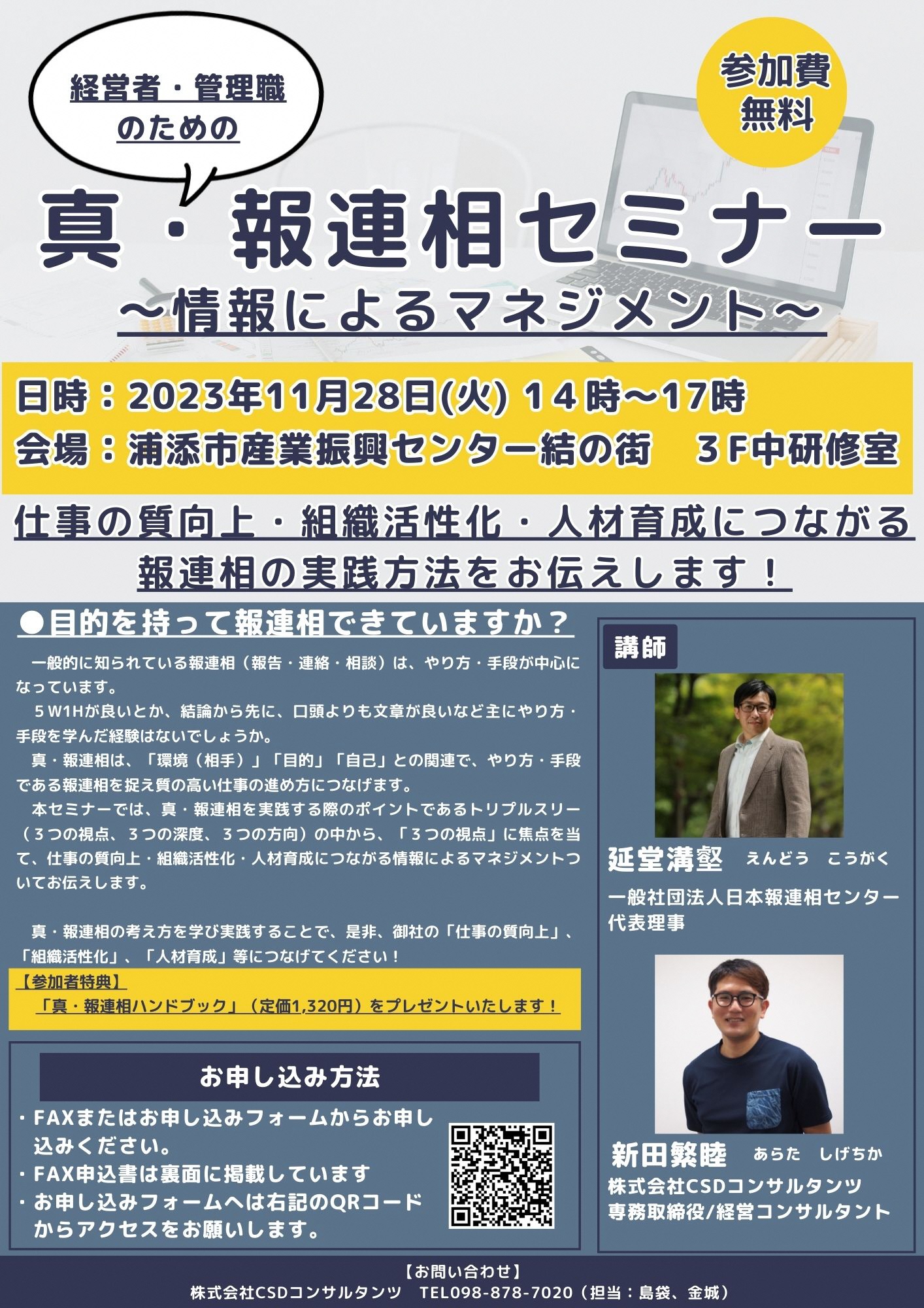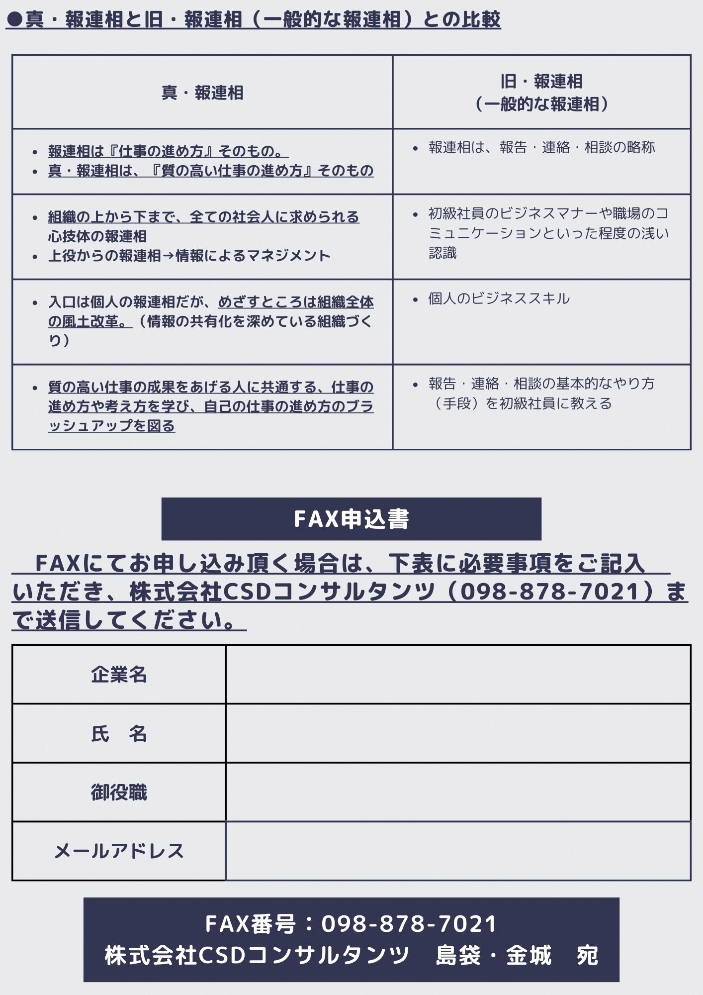 お問い合わせ先:株式会社CSDコンサルタンツ TEL:098-878-7020(担当:島袋、金城)