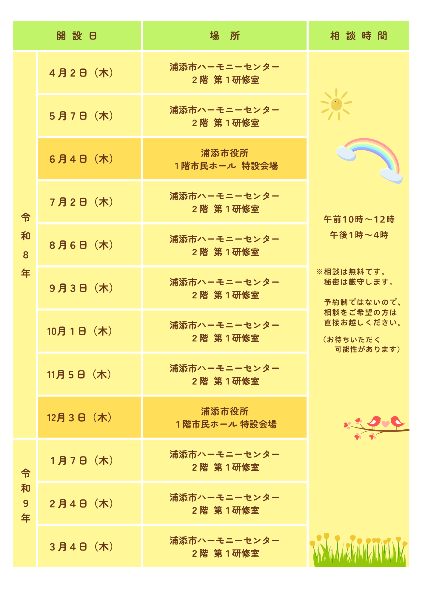 ◇ 令和8年度 人権相談実施日程