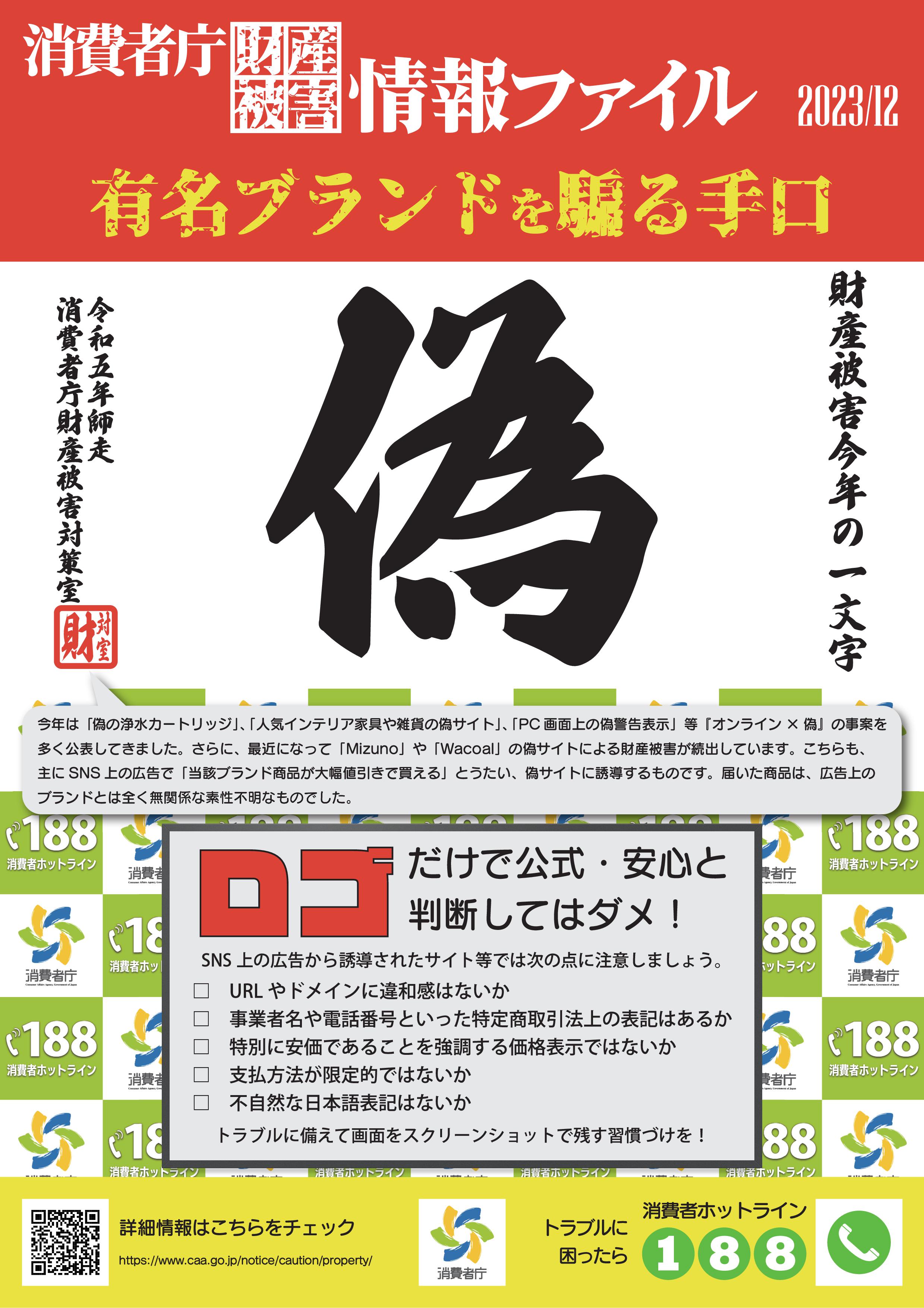 人気ブランドの女性用衣料品等を販売すると称する偽サイトに関する注意喚起【外部サイトへリンク】(消費者庁)