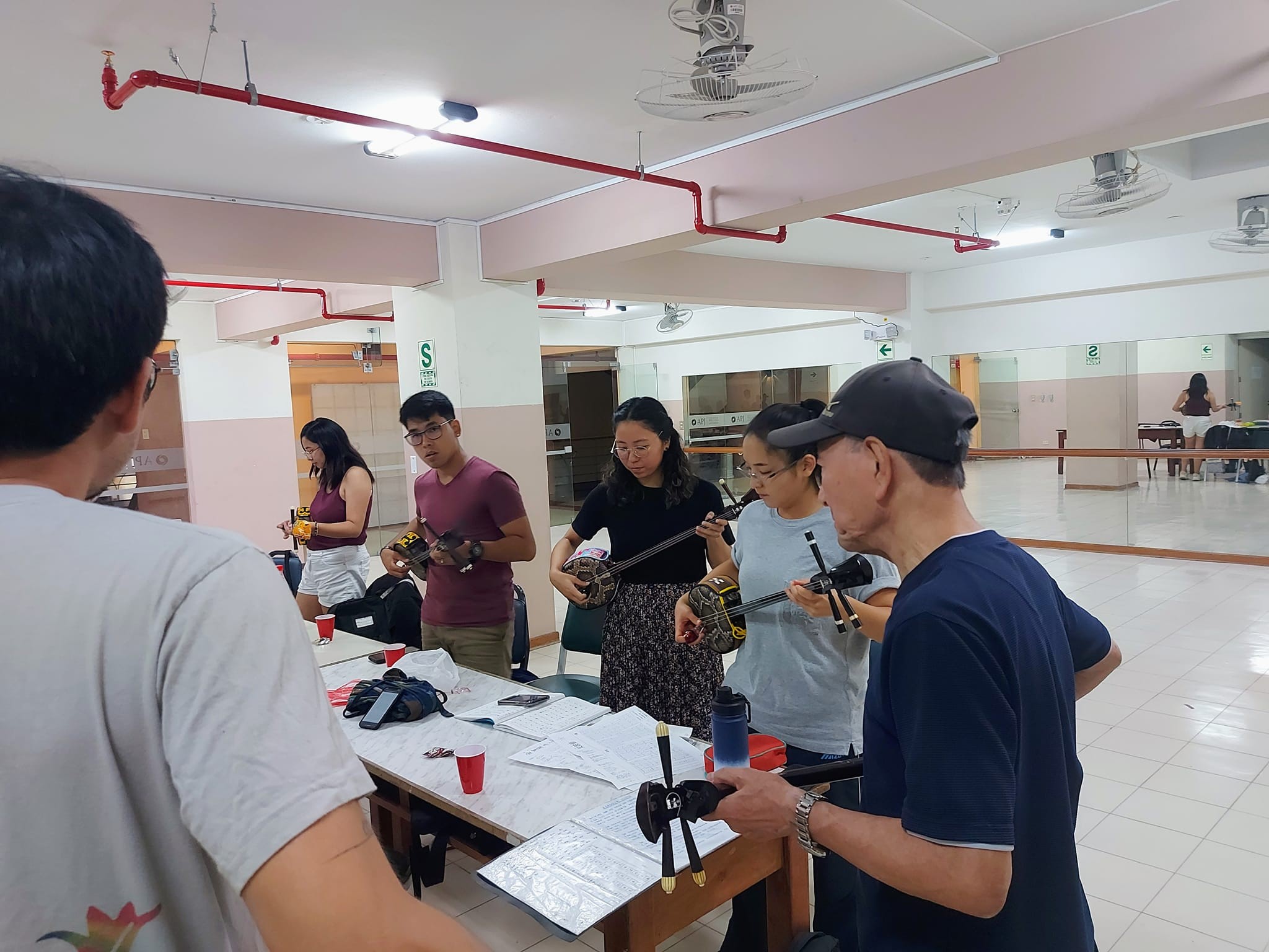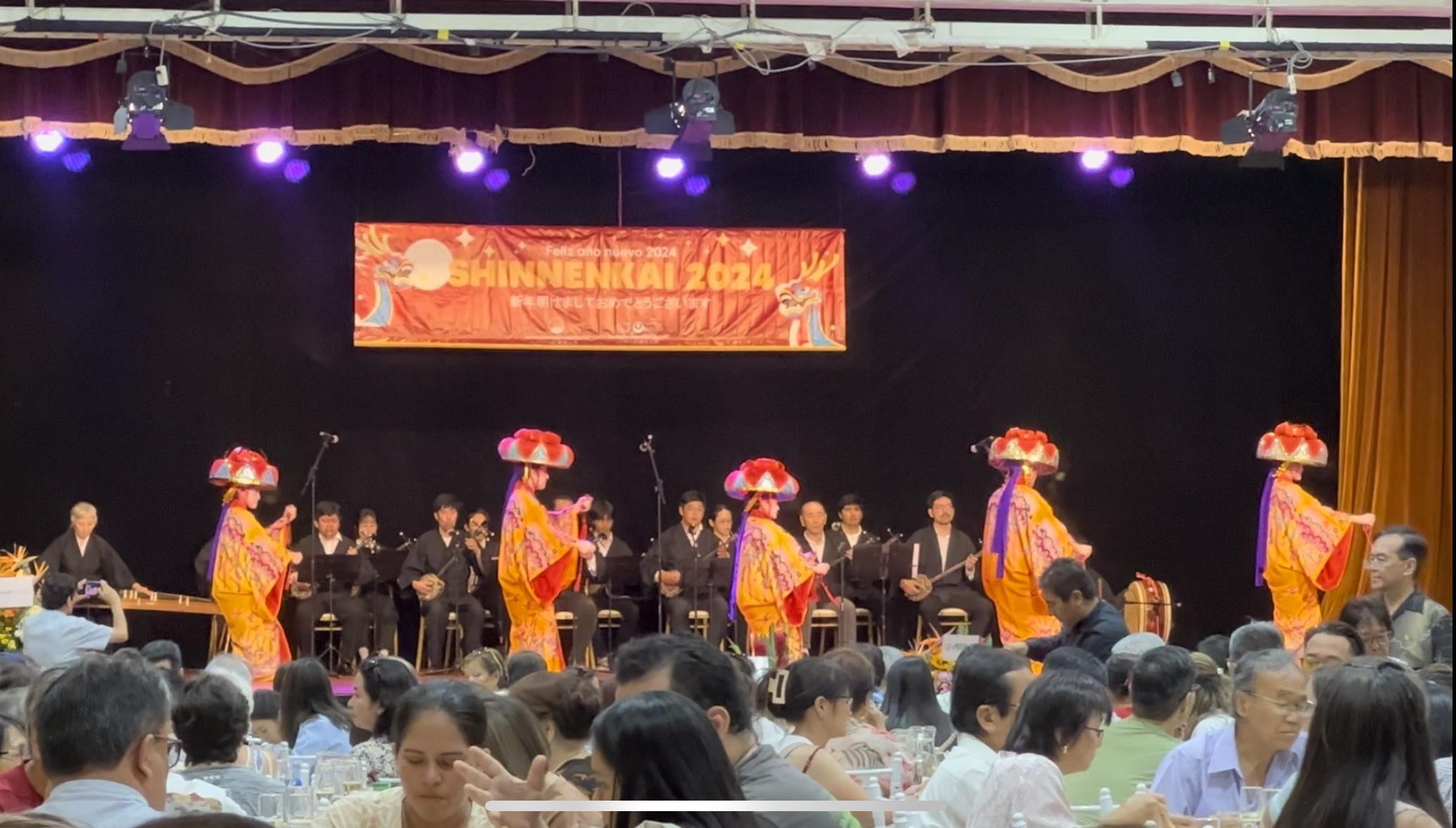 戻ってすぐに、ぺルー沖縄県人会で行われる新年会の発表会があったので、野村流のリハーサルに再参加しました。この日は「かぎやで風」と「四つ竹」を披露しました。 私はまだ上手ではありませんが、研修をする前はできなかった三線を弾きながら歌うことができるようになりました。だから、その日に参加できて本当に良かったです。