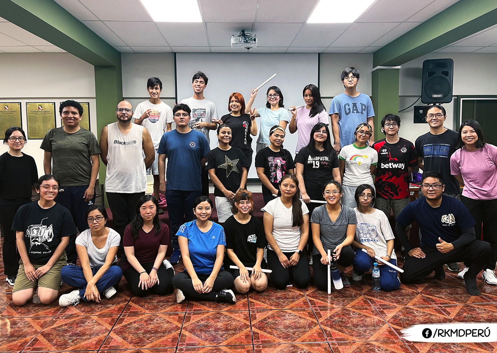 1月に琉球國祭り太鼓ペルーにも行き始めました。研修期間中に私たちが最も気に入った活動の一つは、外間さんと鼓衆若太陽のメンバーと一緒にエイサーについて学ぶことができたことです。だから、私はペルーでもこの踊りの練習を続けて、沖縄の文化とのつながりを保ちたいと思いました。私たちはグループに入ったばかりなので、基本的なステップを教えてもらっています、その後はだんだん上級メンバーと一緒に振り付けを学びます。その時が楽しみです。沖縄でよく聞いていた曲を踊れるので。