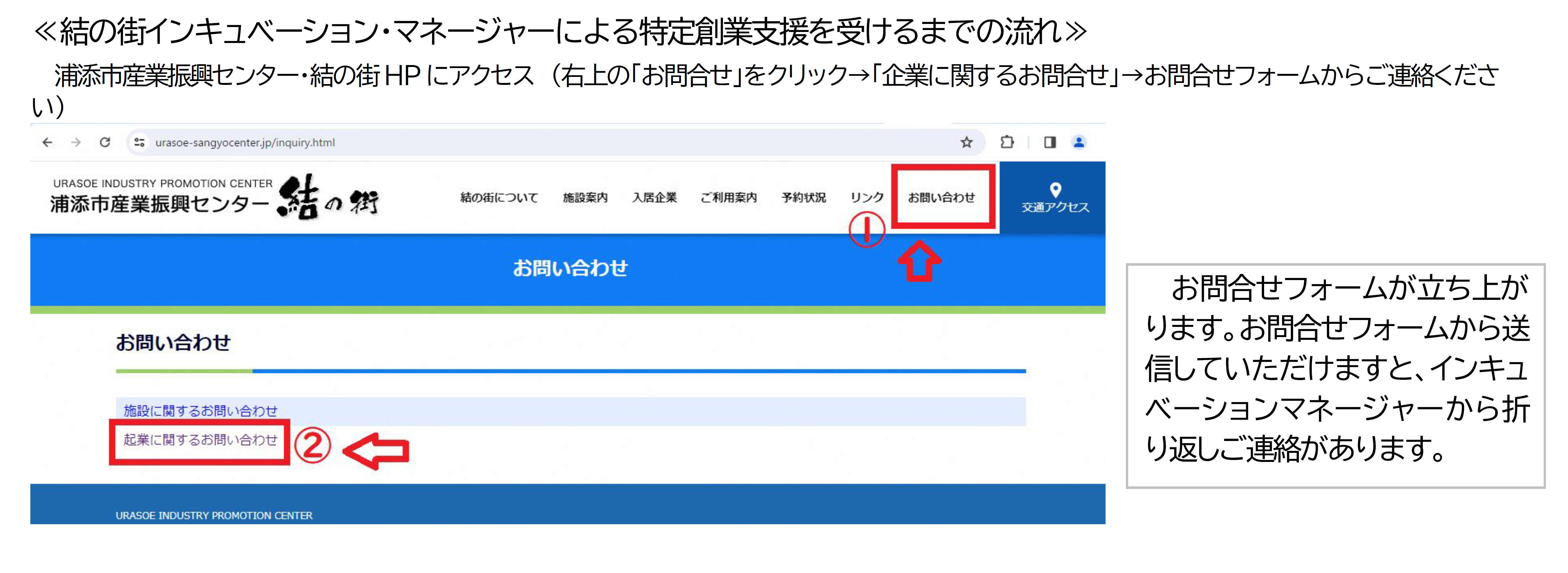 支援内容 :結の街インキュベーションマネージャーが、創業の考え方から申請に至るまでの各種相談に応じます。