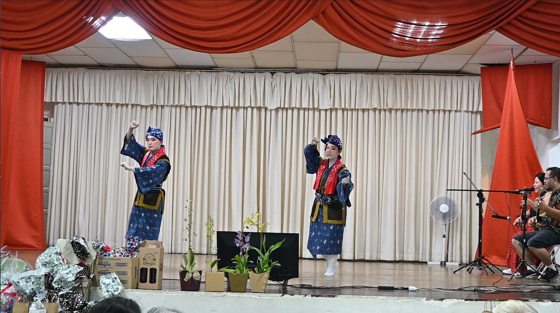 Houve mais uma apresentação musical de Sanshin, incluindo as tradicionais e, sempre tocadas, músicas “Asadoya Yunta” e “Tinsagu no Hana”. E não tivemos somente música uchinanchuu! Tivemos alguns clássicos da música brasileira tocados no violão e Sanshin.