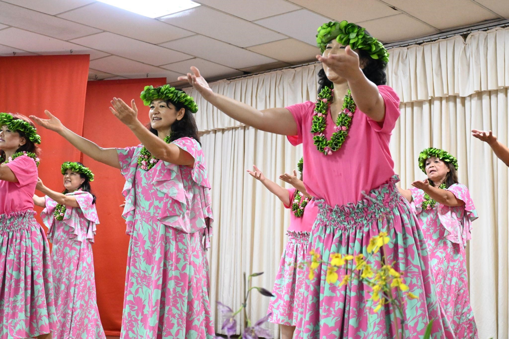 最後に、皆さんはビンゴをプレイし、そのあと、新年会で初めてフラダンスのパフォーマンスが行われました。