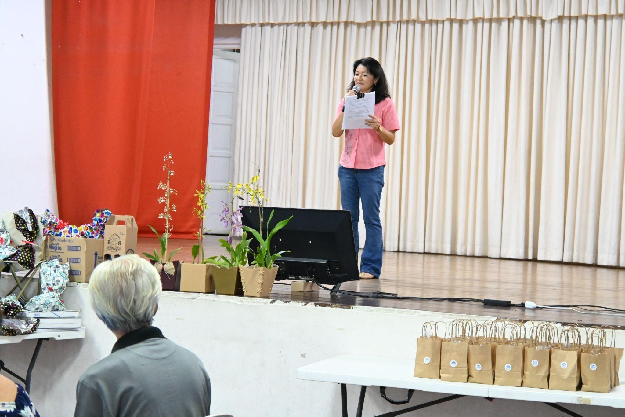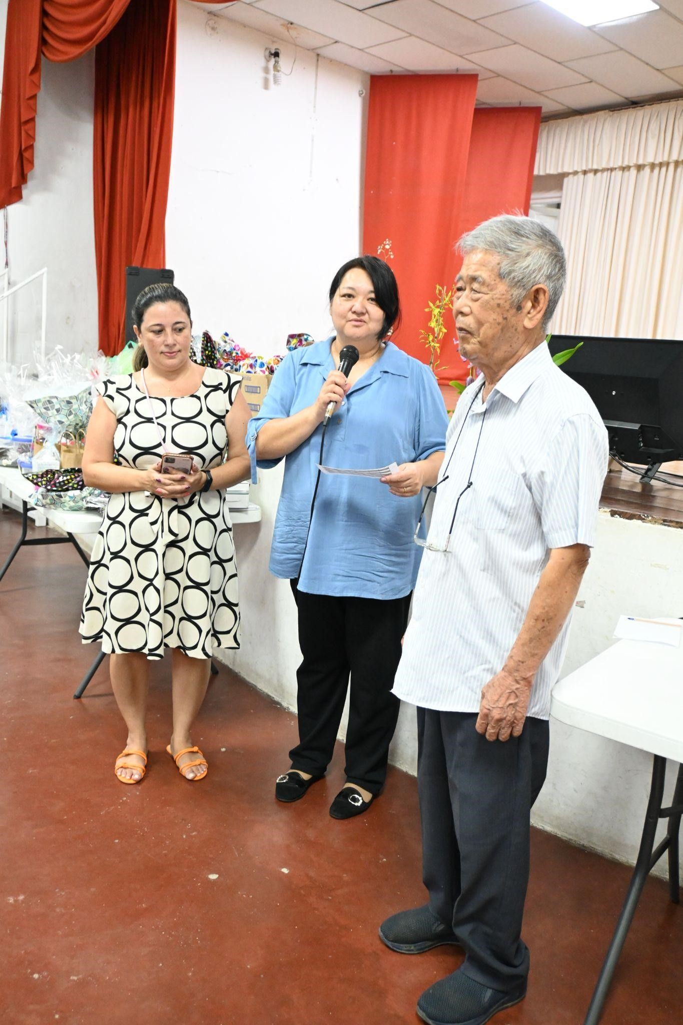 オープニングセレモニーで、あたたかい歓迎の言葉で行われ、次に比嘉ロザーナさんのスピーチが続きました。比嘉さんは最初の浦添市の研修生でした(1989年)。郷友会の現在の会長です。その後、元研修生を代表するスピーチと2023年の会計の報告 が行われました。