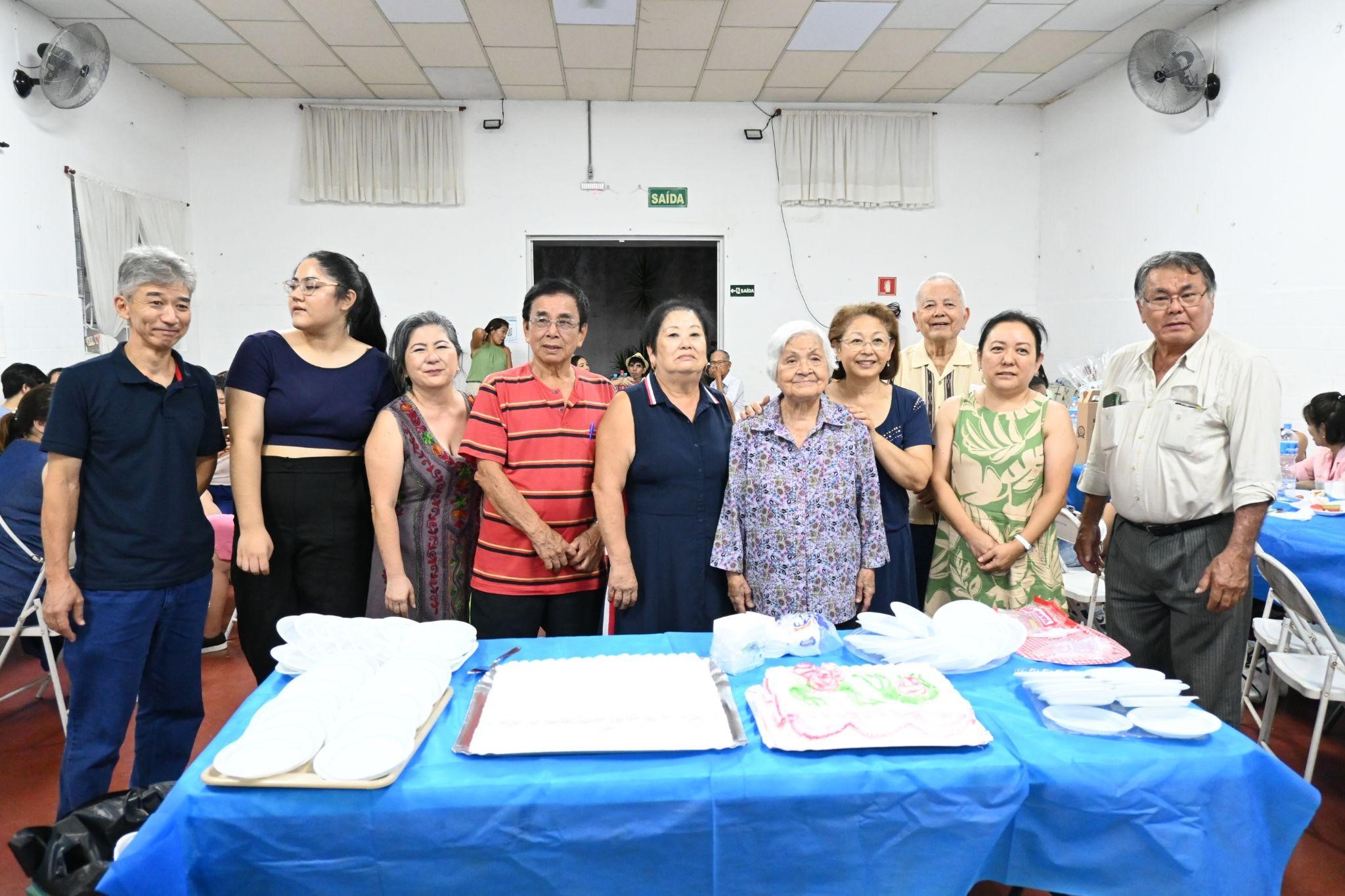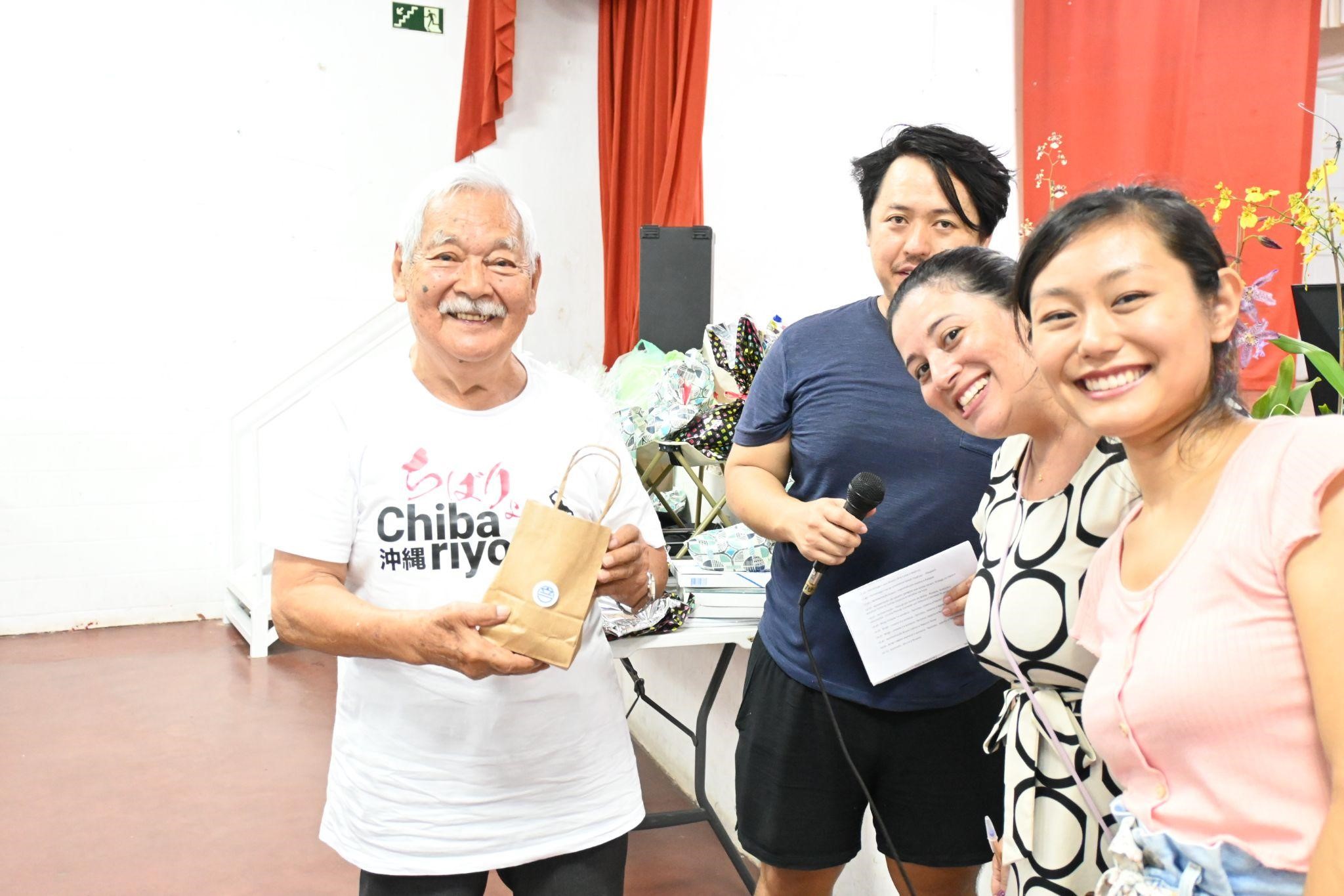Em todos os shinnenkais, realizamos uma homenagem aos participantes acima de 80 anos. Neste ano não foi diferente, e homenageamos cerca de 20 pessoas, que receberam um presente e uma salva de palmas! Uma segunda homenagem foi realizada, agora especialmente para o nosso ex-presidente, Seikichi Oyafuso.
