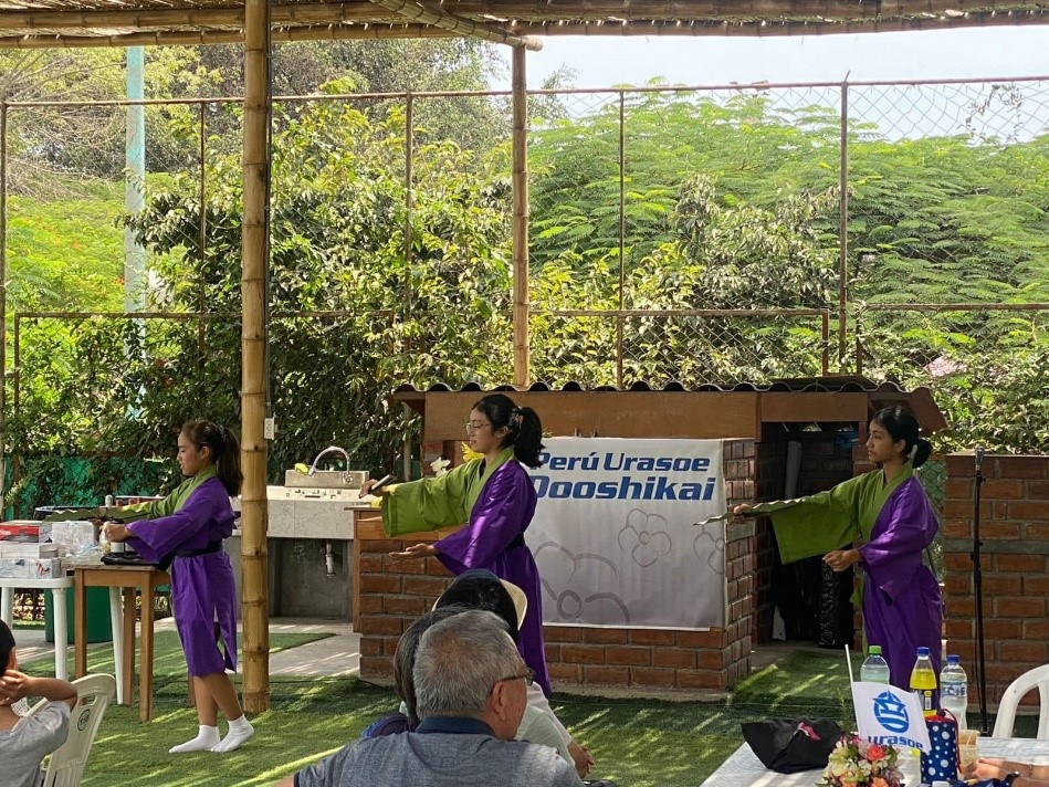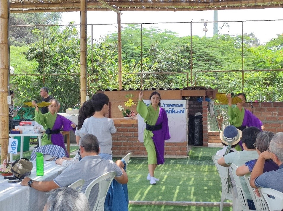 柳清本流柳清会ペルー支部による華麗な沖縄舞踊は、マタヨシ・ヴァレリアさん、アロステギ・スエミさん、アロステギ・ヒロミさんによって披露されました。