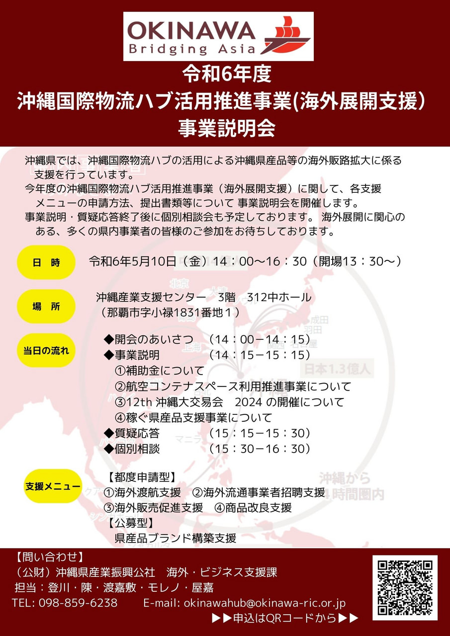 今年度の沖縄国際物流ハブ活用推進事業(海外展開支援」に関して、各支援メニューの申請方法、提出書類等について事業説明会を開催します!