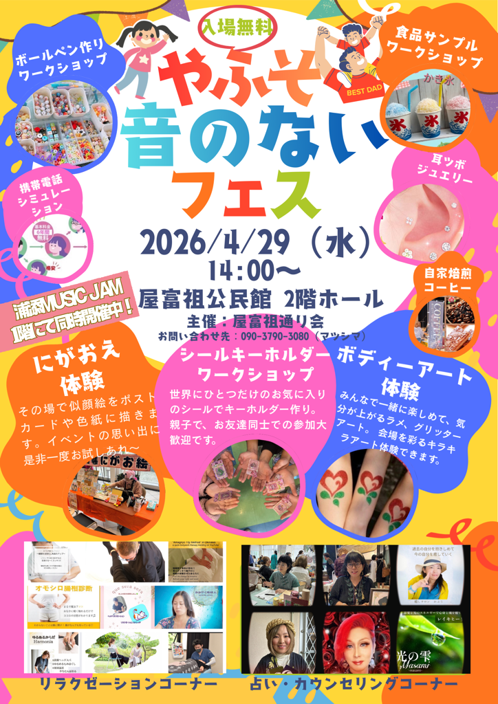 ![]() | 2026年04月29日(水) | 【商店街イベント】4/29(水)開催‼やふそ音のないフェス | 屋富祖通り会が主催するやふそ音のないフェスが4月29日(水)14時から開催されます! 皆様のご来場をお待ちしております。 |