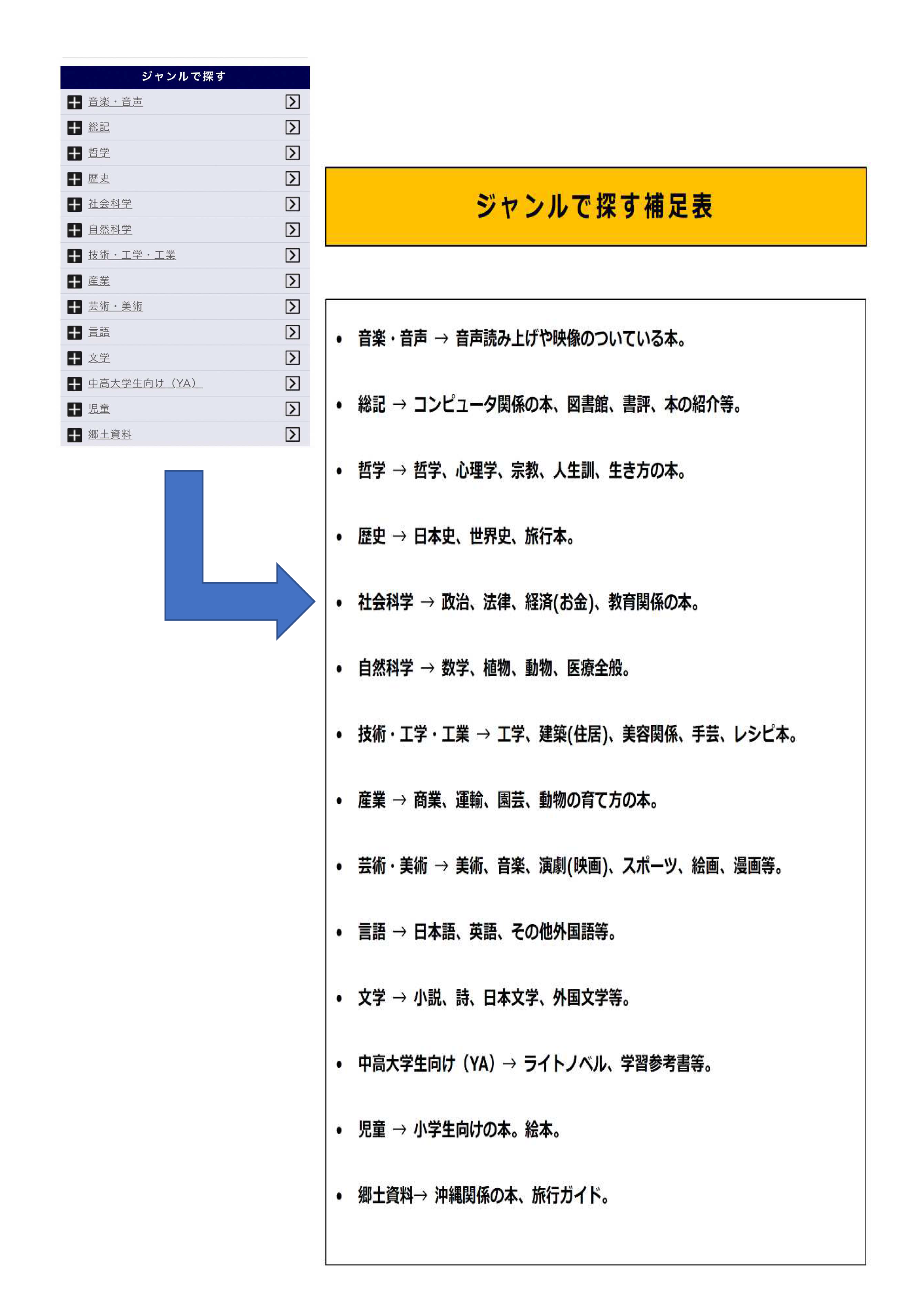 わかりやすく補足した「ジャンルで探す」補足表を参考にしてみてください!