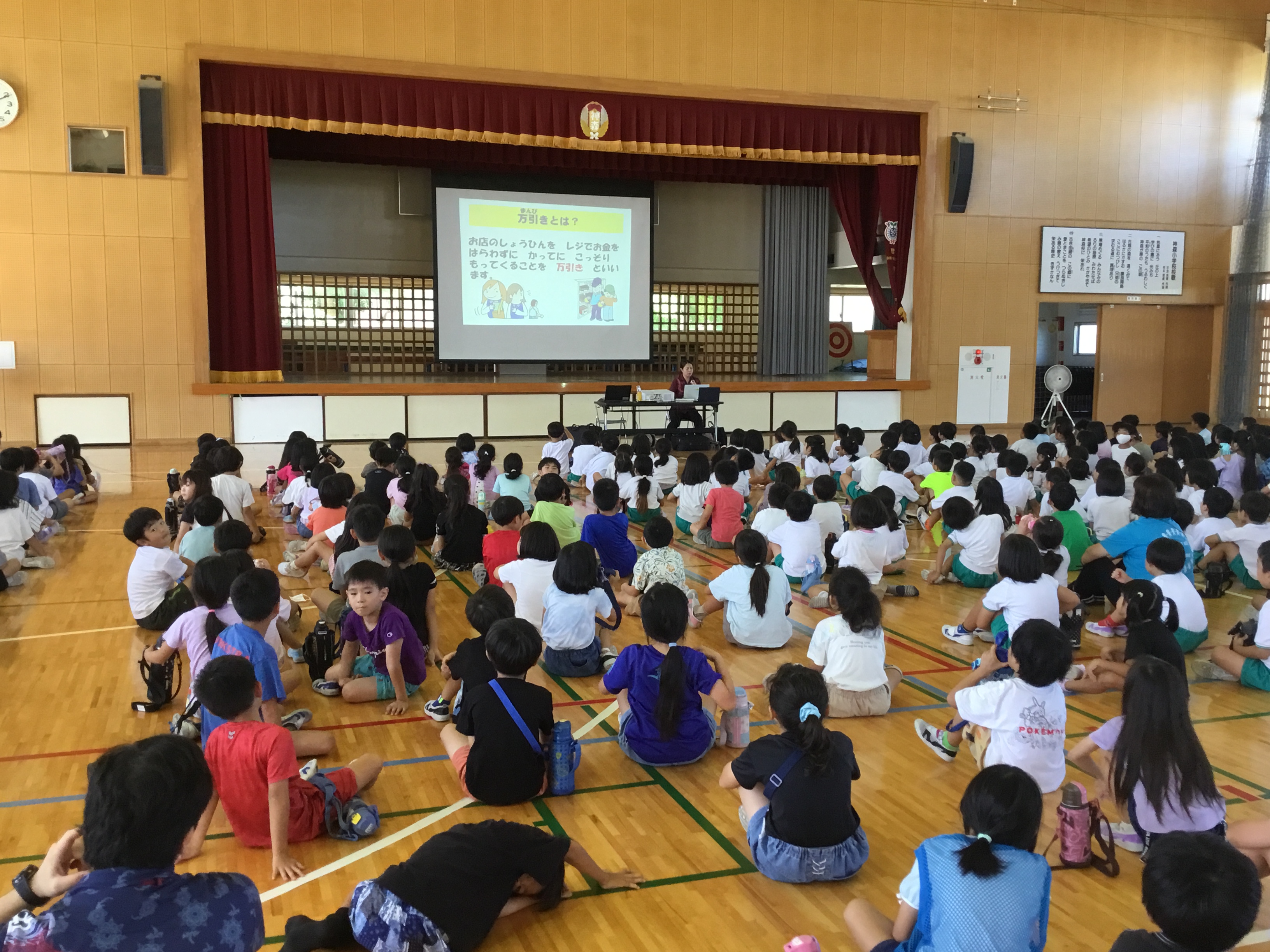 本日、6月の授業参観日を実施しました。たくさんの保護者の皆様が来校され、子ども達の学習の様子を見てくれました。また、体育館では、非行防止教室が行われました。浦添警察署職員を講師として招き、犯罪を起こさない、誘惑されても断る、犯罪に巻き込まれないためにはどうすればよいか学習しました。