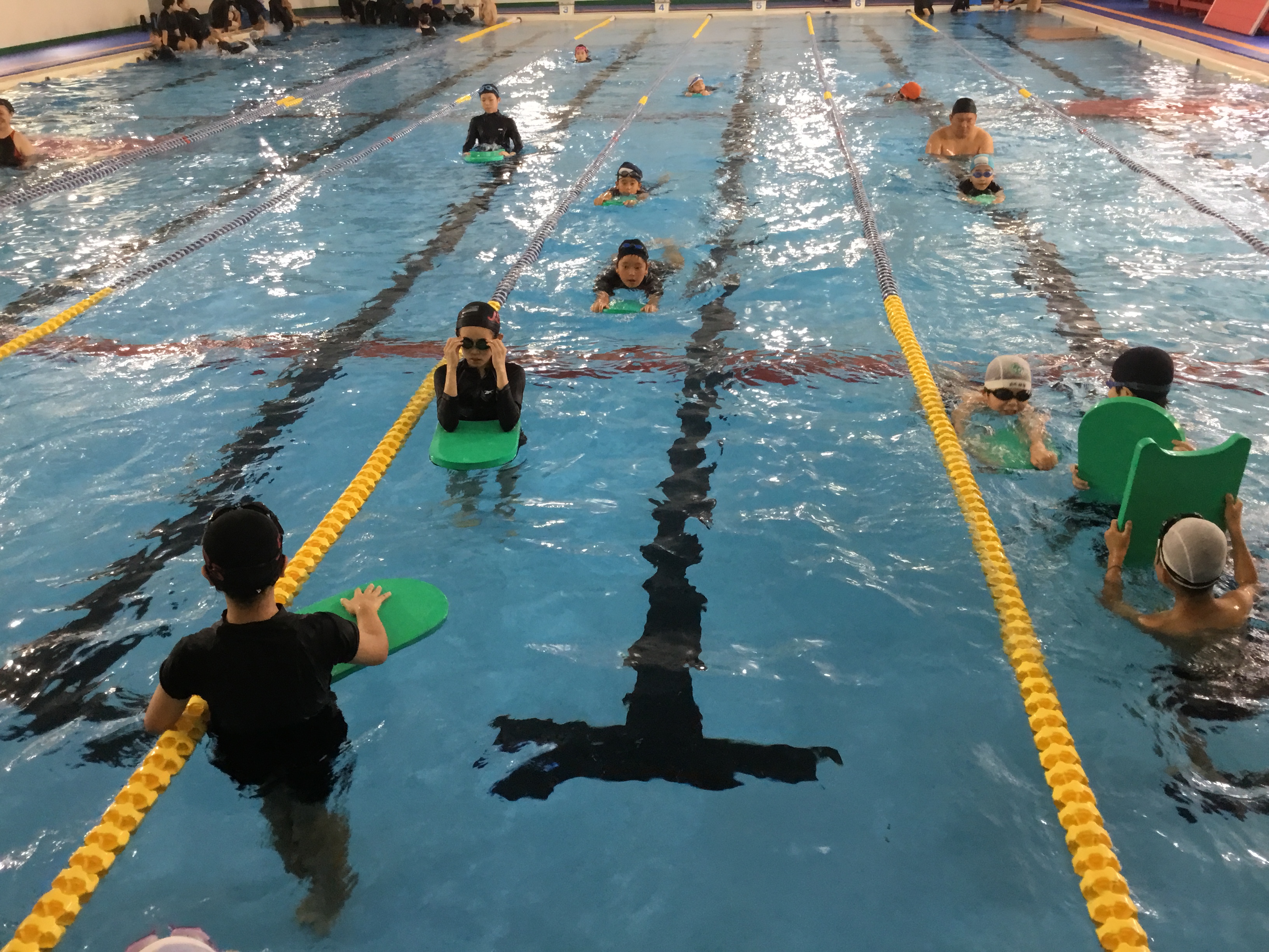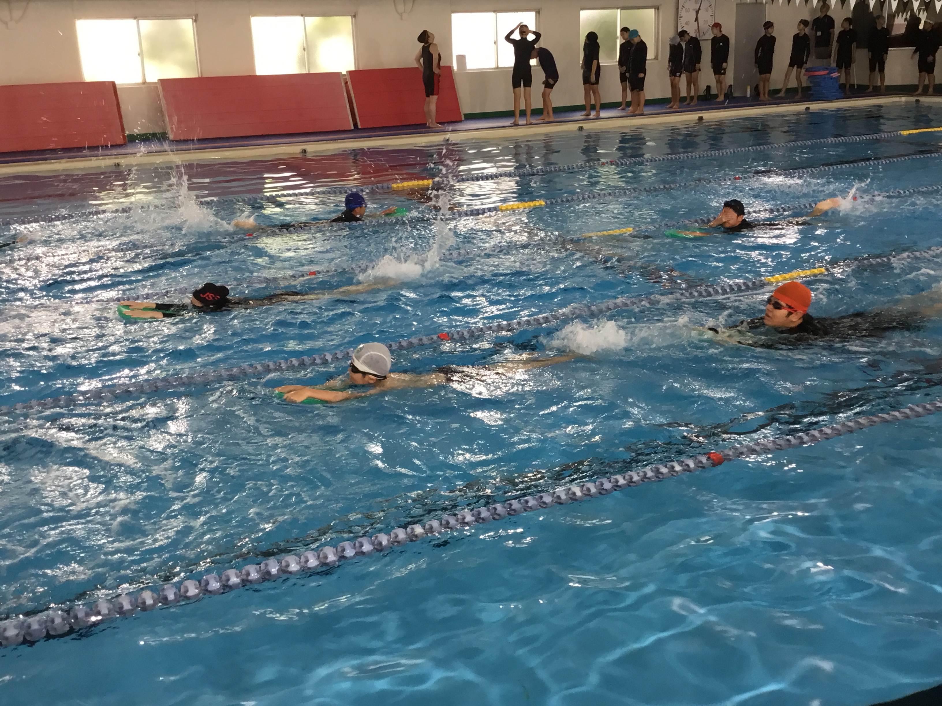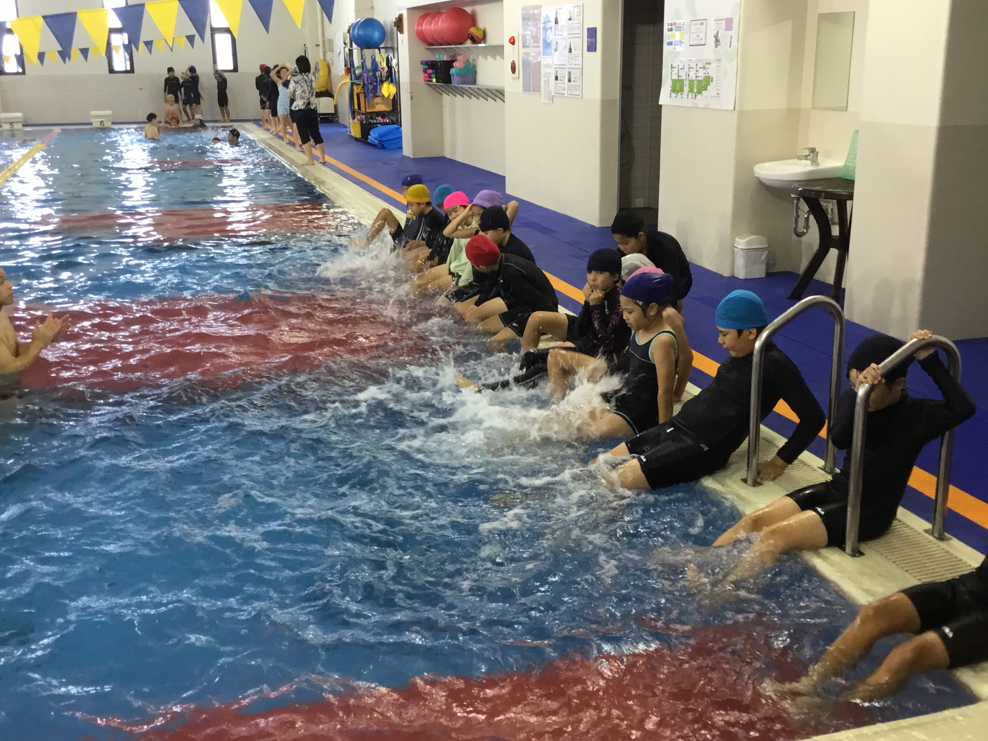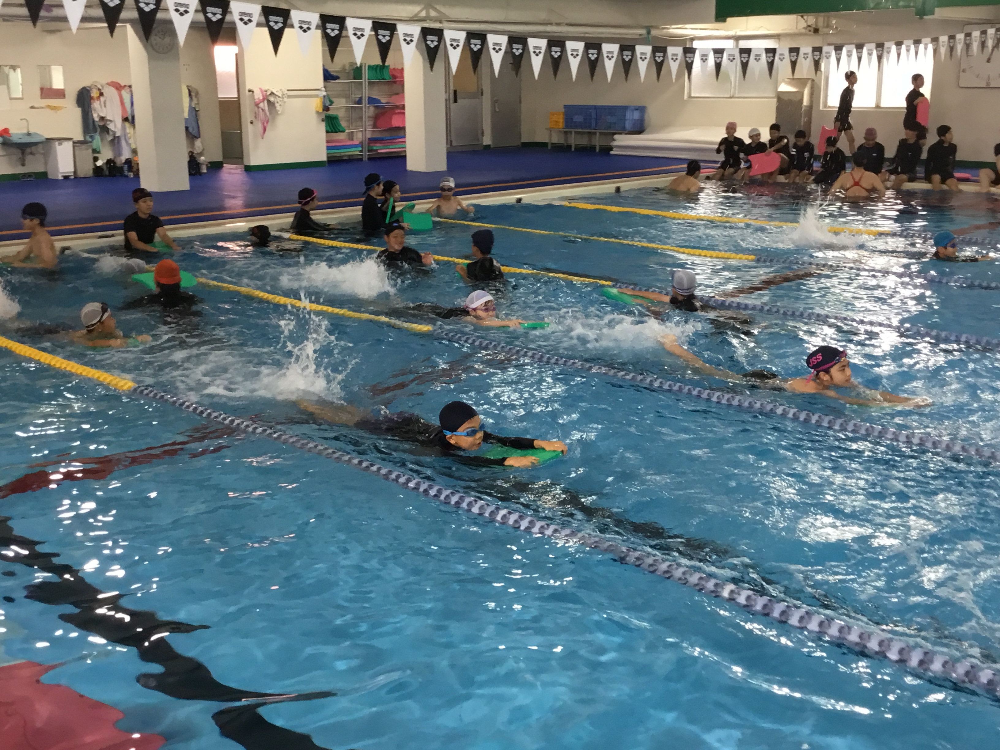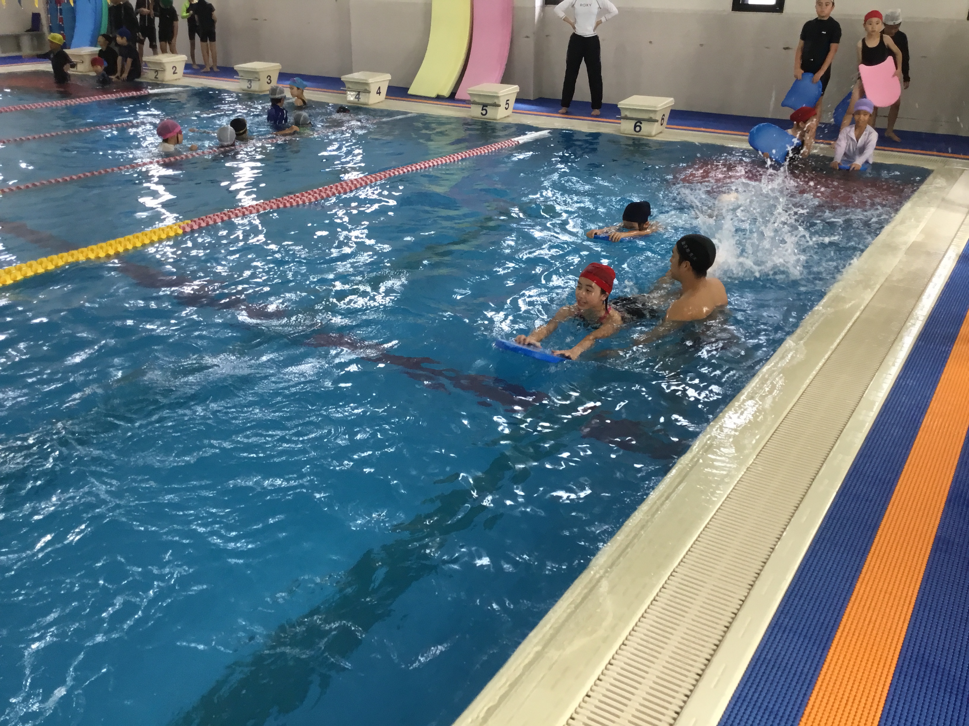 本日、3年生と6年生は体育「水泳学習」を行いました。沖縄スイミングスクール様(前田校・浦添校)と委託連携し水泳学習を実施しています。子ども達は、個々の目標とする泳ぎにチャンレンジし練習に励んでいました。