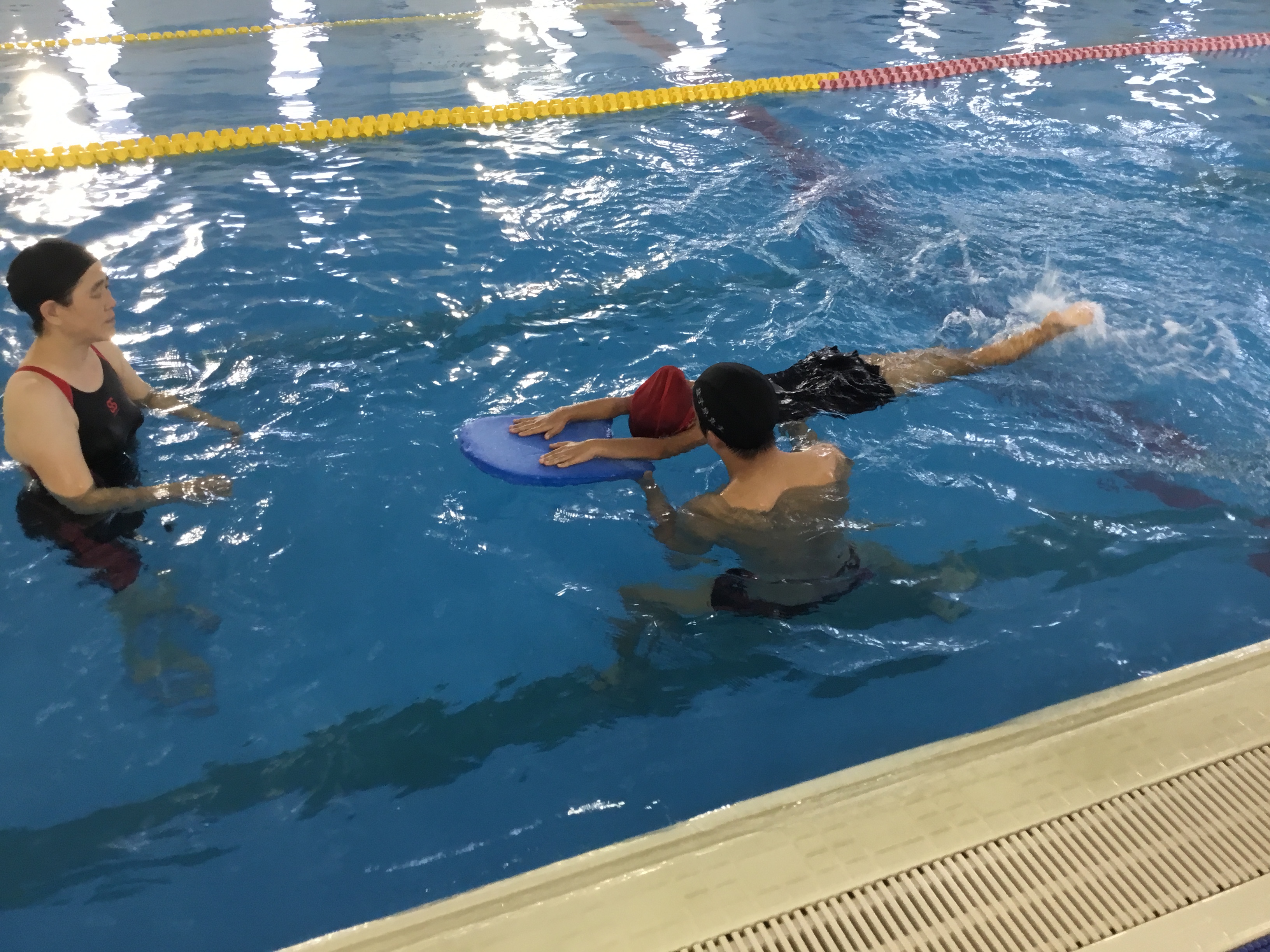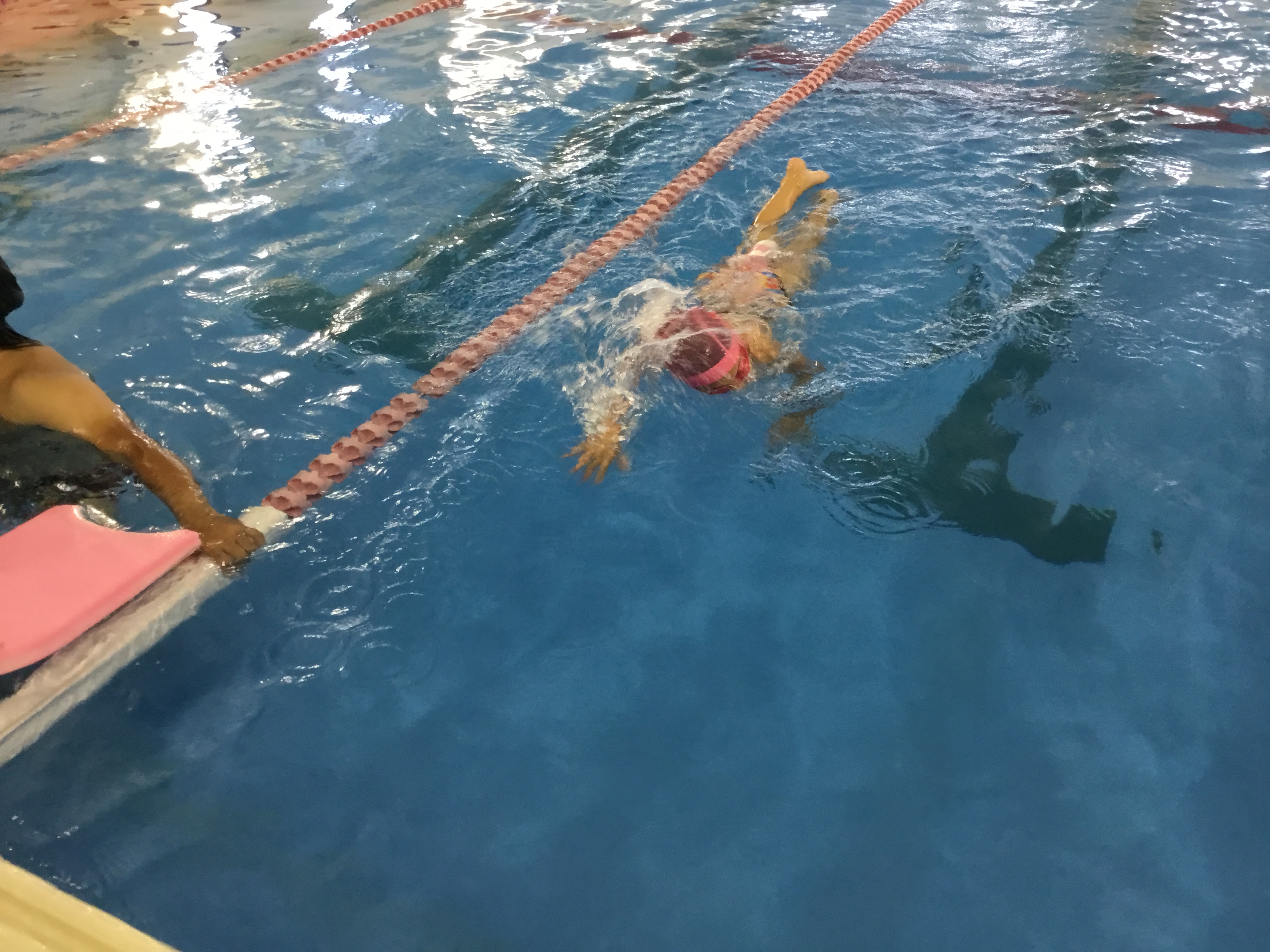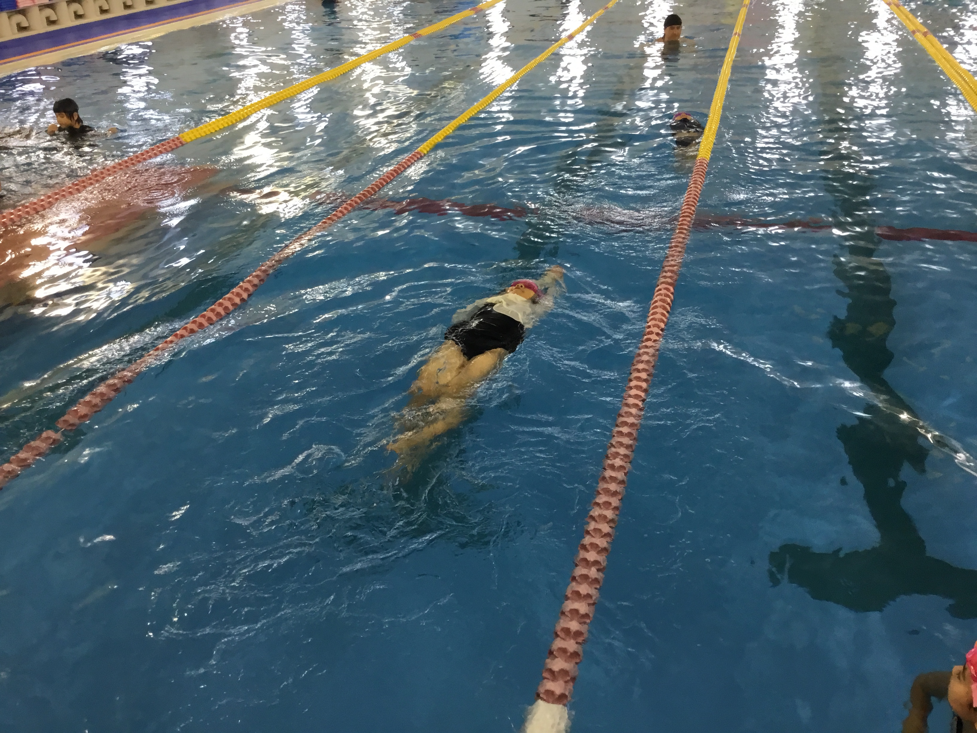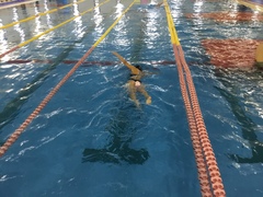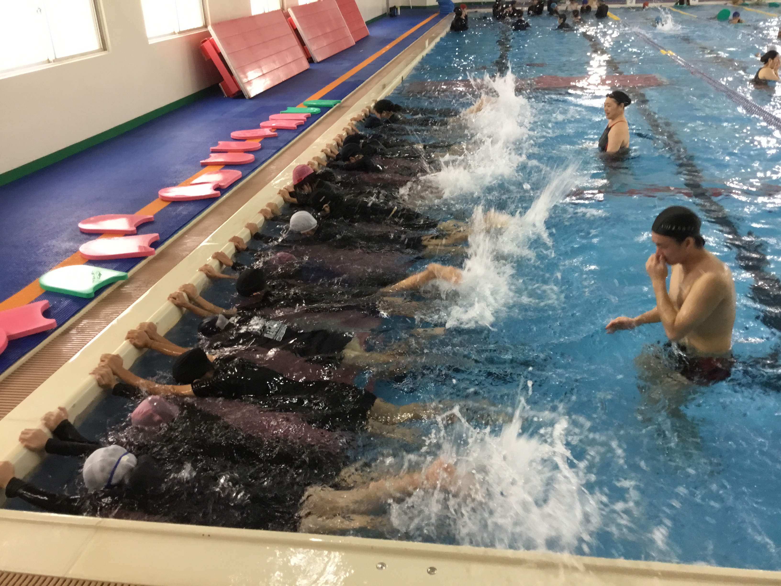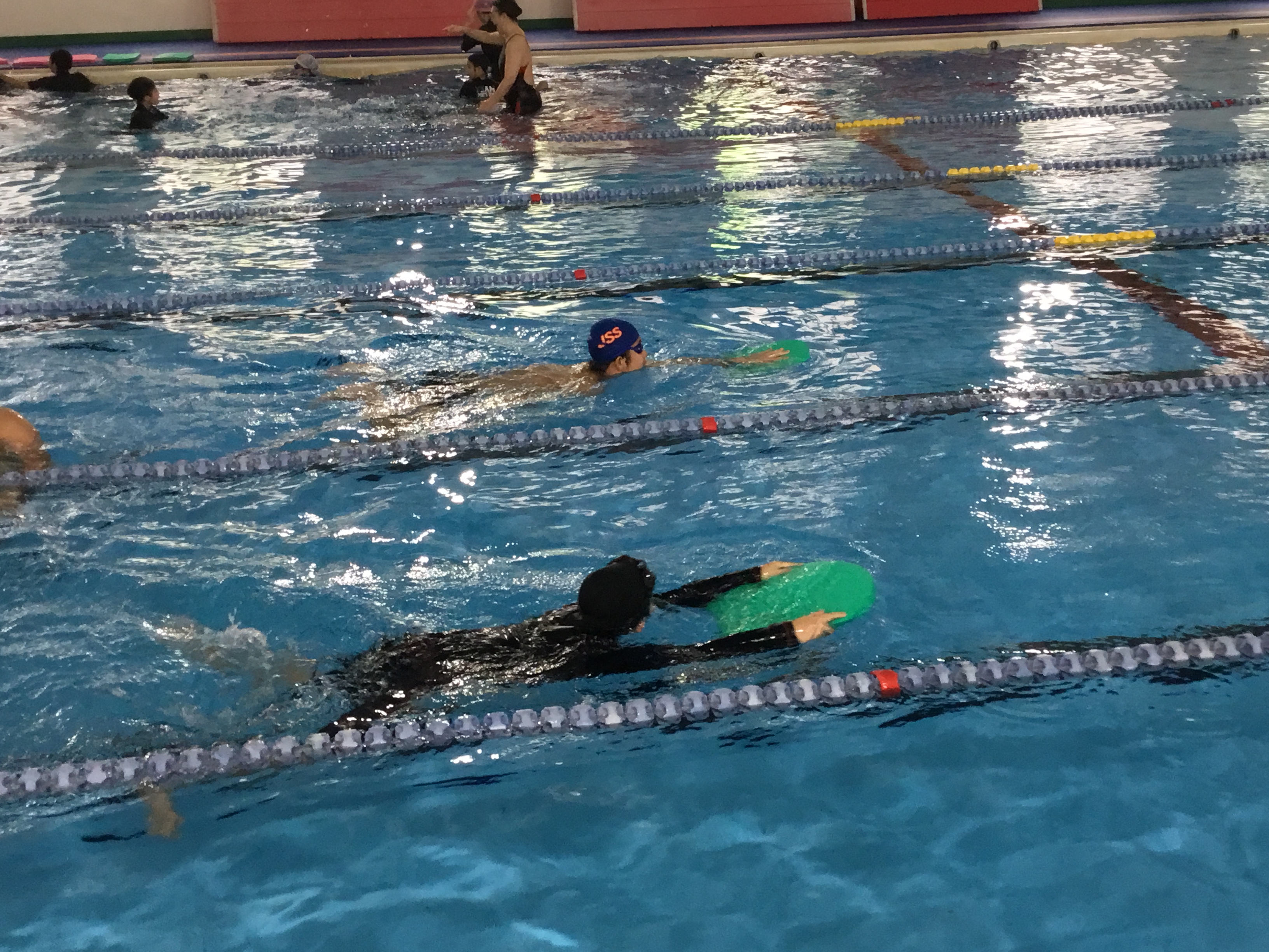 本日、3年生と6年生は体育「水泳学習」を行いました。沖縄スイミングスクール様(前田校・浦添校)と委託連携し水泳学習を実施しています。子ども達は、個々の目標とする泳ぎにチャンレンジし練習に励んでいました。