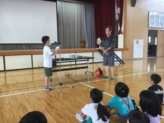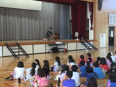 本日の2校時、平和講演会が本校体育館で行われました。講師には浦添市教育委員会教育長の銘苅 健先生が来校され、沖縄戦一人芝居「いくさゆーぬ ゆっかぬひー」を演じてくれました。教育長の迫真な演技に、神森っ子たちも釘付け。戦争の悲惨さ、怖さを語り、「命こそ宝」、命のリレーについて演技を通して伝えていました。劇が終わると全校児童で「沖縄から平和の歌」を合唱しました。最後に児童代表の佐久川 航さんはお礼の挨拶で「今日の講演会で感じたことは、戦争はたくさんの命を奪ってしまう、平和がずっと続いてほしい。」と銘苅教育長へ伝えました。銘苅教育長、本日は誠にありがとうございました。