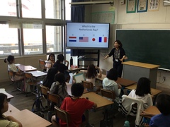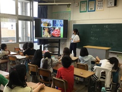 本日、異文化交流会が4年生3クラスで行われました。交流会ではアメリカ、オランダ、台湾、オーストラリア、フィリピンの国について、生活文化、気候、地形や学校の様子、生活の様子について英語を通じて理解することができました。特に各国の学校の夏休みの期間については、日本と違いがあることを知り、驚いた様子でした。