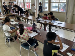 勢理客自治会では、夏休み期間の午前中~午後にかけ「子どもカフェ」をスタートしました。自治会には子どもたちがたくさん訪れ、午前中は学習タイムや遊びタイム、午後は食事タイムという取り組みをしていました。午前中の学習タイムには、大学生もボランティアで参加し子どもたちの学習支援をしていました。また、行政や社会福祉協議会のサポートもあり、子どもの居場所となっています。関係者者の皆様、子どもたちのためにありがとうございます。