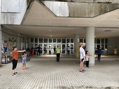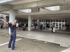 朝の6時30分、学校のピロティでは「いち、にー、さん、しー」と声が響きました。夏休みのラジオ体操です。地域の皆様のお力添えのおかげで、子ども達にラジオ体操を実施していました。夏休み期間中は、神森小学校、勢理客公民館、神森団地、ゆうな公園、こうのいけ理髪店(宮城店)でラジオ体操をしています。神森っ子の皆さん、生活リズムを整えるうえでも、積極的にラジオ体操に参加しましょう。