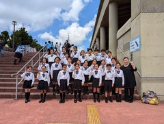 本日8月4日(日)、沖縄市の市民会館大ホールにおいて「第64回沖縄県合唱コンクール」が開催されました。本校から、創部立ち上げたばかりの神森小学校合唱団が初参加しました。なんと銀賞を受賞しました!!3年生~6年生28名の心を一つにし、表現豊かな歌声を見事に発表してくれました。あいにく会場内での撮影は禁止でしたが、発表後の集合写真はどの子もさわやかな笑顔でした。神森小学校合唱団の皆さん、感動をありがとうございます!そして、銀賞おめでとうございます!!