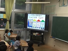 本日、給食委員会さんによるオンライン「9月の食育チャンネル」朝会がありました。今回は3大栄養について学習しました。普段おいしくいただいている給食は、赤色の食品(体をつくる)、黄色の食品(エネルギーのもと)、緑色の食品(主に体の調子)の3つの栄養素がバランスよく入っていることを知りました。