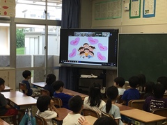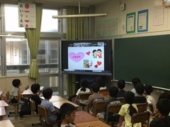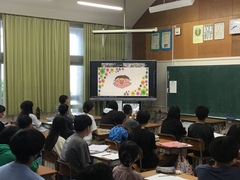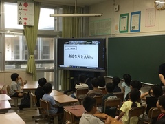 本日の学級の日に人権委員会さんによるオンライン朝会が行われました。今月の人権目標は「身近な人を大切に」を全校児童で確認しました。自分の近くにいる「家族」「友達」「敬老の日に係るおじいちゃんやおばあちゃん」に感謝の気持ちや「ありがとう」という言葉をかけ、気持ちをもって言葉や行動で伝えていくことを呼びかけていました。