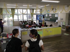 本日、第2回神森小学校区こども園・小学校の連絡協議会が行われました。入学して5か月目に入る1年生の様子を神森小学校区のこども園(神森、勢理客、ありあけ)の先生方が来校し、午前中は授業参観、午後はこども園と小学校の先生方で意見交換を行いました。午前中の授業参観では、各こども園出身の子ども達が、お世話になった先生の方へ駆け寄る等、微笑ましい姿が見られました。