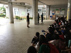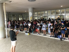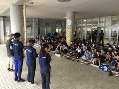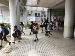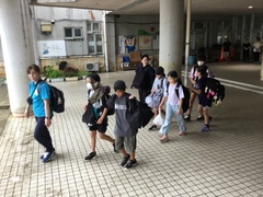 台風14号の影響であいにくのお天気ですが、5年生の自然教室がスタートしました。これまで事前準備を重ねてきた5年生。1泊2日のこの宿泊学習で、しっかり学んできます。出発式では児童代表の発表で「自然体験学習で楽しみにしていることは野外炊飯です。普段とちがって野外で調理することにワクワクしています。自然教室ではみんなで助け合うこと、自然について学習したい。」と発表してくれました。5年生のみなさん、友情を深め、共に協力し、安全にきをつけ、自然教室を楽しんでください。