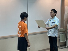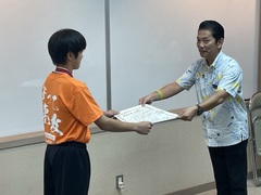 9月19日(木)、8月に行われた全国小学生ハンドボール大会の結果について神森ハンドボールの選手の皆さんが、市長へ優勝報告しました。松本哲次市長から「てだこ市民賞」を授与されました。その後市長や教育長からお祝いの言葉をいただきました。おめでとうございます。