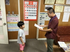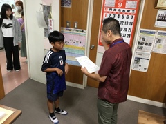 公開日 2024年09月25日 本日のお昼休み、校長室において「けテぶれ(家庭学習ノート)大賞」の表彰式を行いました。表彰された神森っ子の家庭学習ノートは、1階の掲示板に掲示されます。おめでとうございます。 けテぶれ大賞(家庭学習ノート)表彰式