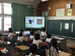 10月8日(火)の学級の日に養護の先生による「目の愛護デー」に関するオンライン朝会「たいせつな目のおはなし」がありました。内容は「目の不思議」「目から入る情報」「目が悪くなると」「神森っ子の視力」「目の健康クイズ」とわかりやすく伝えていました。特に目が疲れた時は、遠くの景色を20秒見ると、目にとって休憩になるということを知り、休み時間などはベランダから見える遠くの景色を眺めている神森っ子がいました。