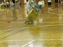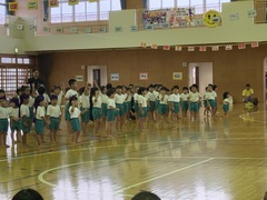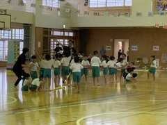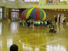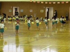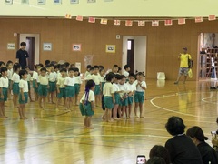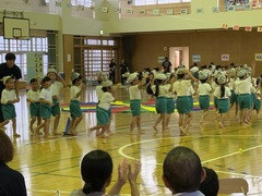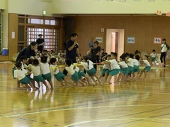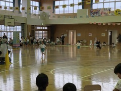 11月9日(土)神森こども園の運動会が、本校体育館で行われました。大きな声で運動会の歌「ゴーゴーゴー」の歌を歌い、種目に入りました。エイサー、パラバルーン、縄跳び・綱引き、かけっこ、お父さんやお母さん、家族の皆さんの前で堂々と発表しました。次年度入学する年長さんの自信ある演技に会場からは大きな拍手がありました。