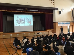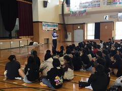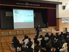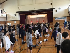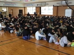 1月29日(水)、神森中学校区小中連携教育の取り組みとして、6年生を対象に「神森中学校登校日」が実施されました。この日、新年度に中学生になる6年生は、神森中学校へ徒歩で登校しました。進学に向けて、中学校生活の様子や、入学する生徒一人一人が主人公となり学校を創っていくことなどについて、神森中学校の喜久川校長先生からお話がありました。後半は、神森中学校ダンス部から「校歌ダンス」を教わるなど、和やかな雰囲気の登校日となりまました。