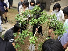 本日、6年生は卒業記念樹の植樹と未来の自分へ書いた手紙をタイムカプセルに入れました。植樹式では、各3学級がそれぞれの木「アマミアラカシ」「さがり花」「カラ木」をビオトープに周辺に植えました。その後、タイムカプセルに未来の自分へ書いた手紙をいれました。