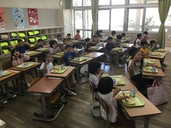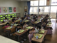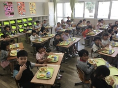 公開日 2025年04月11日 昨日の入学式を終え、新1年生が登校しました。学校生活での様子をしっかり学んでいます。今日は小学校で初めての給食。メニューはカレーライスでした。みんなでおいしくいただきました。 小学校で初めての給食たべたよ