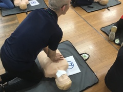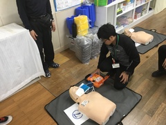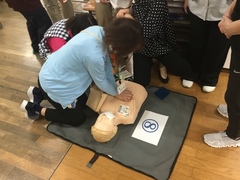 去る4月18日(金)、先生方は救急救命講習会を受講しました。緊急時の対応時のため「胸骨圧迫(心臓マッサージ)やAEDの使い方」「エピペンの使い方」「喉に食べ物が詰まった時の対応(背部叩打法等)」について実際に演習を行いました。