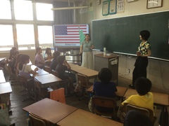 本日の5・6校時、4年生3クラスは「異文化交流会」を体験しました。授業では、ジャマイカ、ブラジル、フィリピン、アメリカ、マレーシアと5か国のテーマにしたブースを巡り、それぞれの国の言葉、習慣、文化、日本からの距離、食べ物について学びました。子どもたちは「えっ~、こんな遊びするんだ!」「えっ!食べ物の値段が日本より安いよ」など、驚きと興奮を感じながら多くの新しいことを発見していました。
