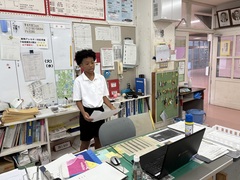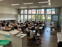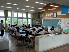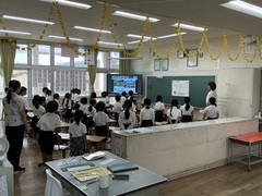 41日間の夏休みが終わり、学校に子どもたちのにぎやかな声が戻ってきました。本日8月29日(金)、いよいよ第2学期がスタートしました。登校する子どもたちの様子を見ると、身長が伸びた子、日焼けした子、夏休みの作品を両手に抱えている子など、夏の成長が感じられました。1校時にはオンラインで始業式を行いました。6年生の代表児童から、①相手の立場にたって考えること、②積極的に行動すること、③中学校に向けて学習と生活をより良くしていくといった、力強い挨拶がありました。校長先生からは、今夏の高校野球で優勝した沖縄尚学院高等学校のお兄さんたちの話がありました。仲間と力を合わせ、最後まであきらめずに挑戦したことが「優勝」につながったというお話でした。2学期も目標を立て、何事にもチャレンジしていきましょう!。そして、2学期最初の給食は「夏カレー!」久しぶりの給食に、神森っ子たちも大満足の様子でした。