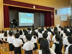 本日、1校時に体育館において令和7年度第2学期の終業式行いました。式では、浦添市歌と校歌を元気よく歌いました。続いて、1年生と3年生の代表児童による2学期を振り返っての発表がありました。1年生の代表児童はこの2学期で「できるようになったこと」「頑張ったこと」について堂々と発表してくれました。3年生の代表児童は「社会見学で学んだこと」「運動会での協力」「音楽発表会に向けてがんばっていること」など具体的なエピソードも交えながら、努力の大切さについてしっかりと伝えてくれました。校長先生からは、2学期に各学年が取り組んできた様々なチャレンジを振り返りながら、「物事を継続する大切さ」についてのお話がありました。明日26日(土)から10日間の冬休みが始まります。ぜひ家族と一緒に楽しく、充実した時間をお過ごしください。神森っ子のみなさん、次に会うのは1月5日(月)です。元気な姿で登校してくれるのを楽しみにしています。保護者の皆様、地域の皆様、今年も本校の教育活動にご理解とご協力を賜り、誠にありがとうございました。来年も変わらぬご支援をどうぞよろしくお願いいたします。