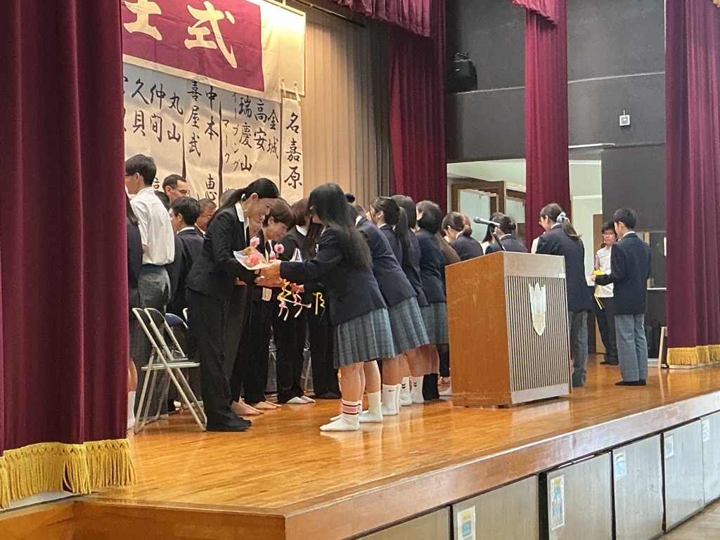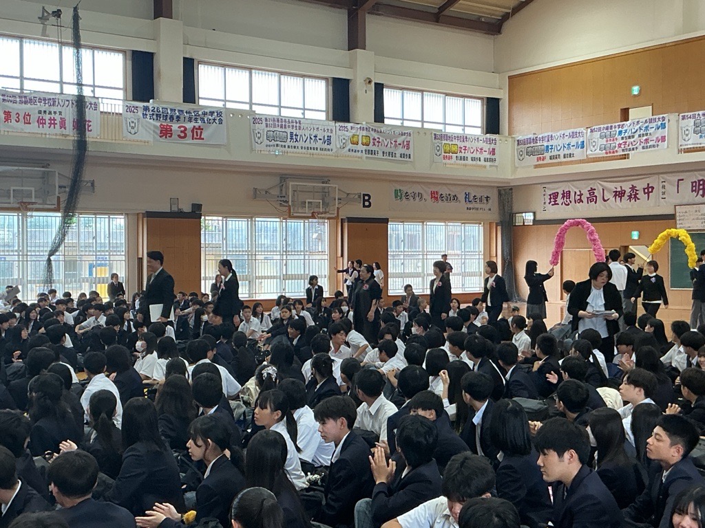 令和8年4月9日(木)に令和8年度新任式・第1学期始業式が行われました。今年度は、教頭先生をはじめ、16名の先生方が新しく赴任されました。新任職員を代表し、名冨綾乃教頭先生が挨拶を行い神森中学校で勤務するにあたっての抱負を述べられました。