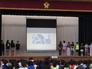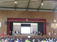 今日は、児童朝会(委員会紹介)④が8:20~体育館で行いました。