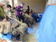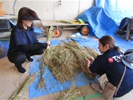 公開日 2024年07月18日 17日(水)の2・3校時に、5年生の総合学習の一環で「脱穀体験」を行いました。 脱穀機は、回すと「ギコギコ」と歴史ある音を奏で、稲をかけると「パチパチ」と稲穂をはじく様子に、子供から歓声が上がってました。
