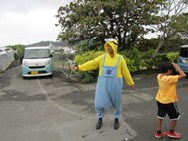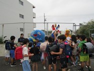 今朝7時30分から前田小学校では、琉球新報のマスコットキャラクター「りゅうちゃん」と琉球ゴールデンキングスのキャラクター「ゴーディーくん」も参加しての【ハローウィン立哨大作戦】を行いました。