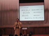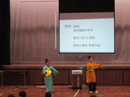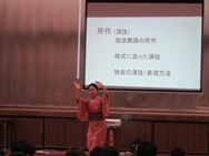 今日の5・6校時に体育館で国立劇場職員による「組踊りワークショップ」を行いました。