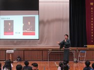 4年生を対象に行い、組踊、琉球舞踊、三線音楽をはじめとする沖縄の伝統芸能について、それらの魅力をより親しみやすく感じてもらえるよう、実演家を講師に、入門編となるワークショップを行いました。